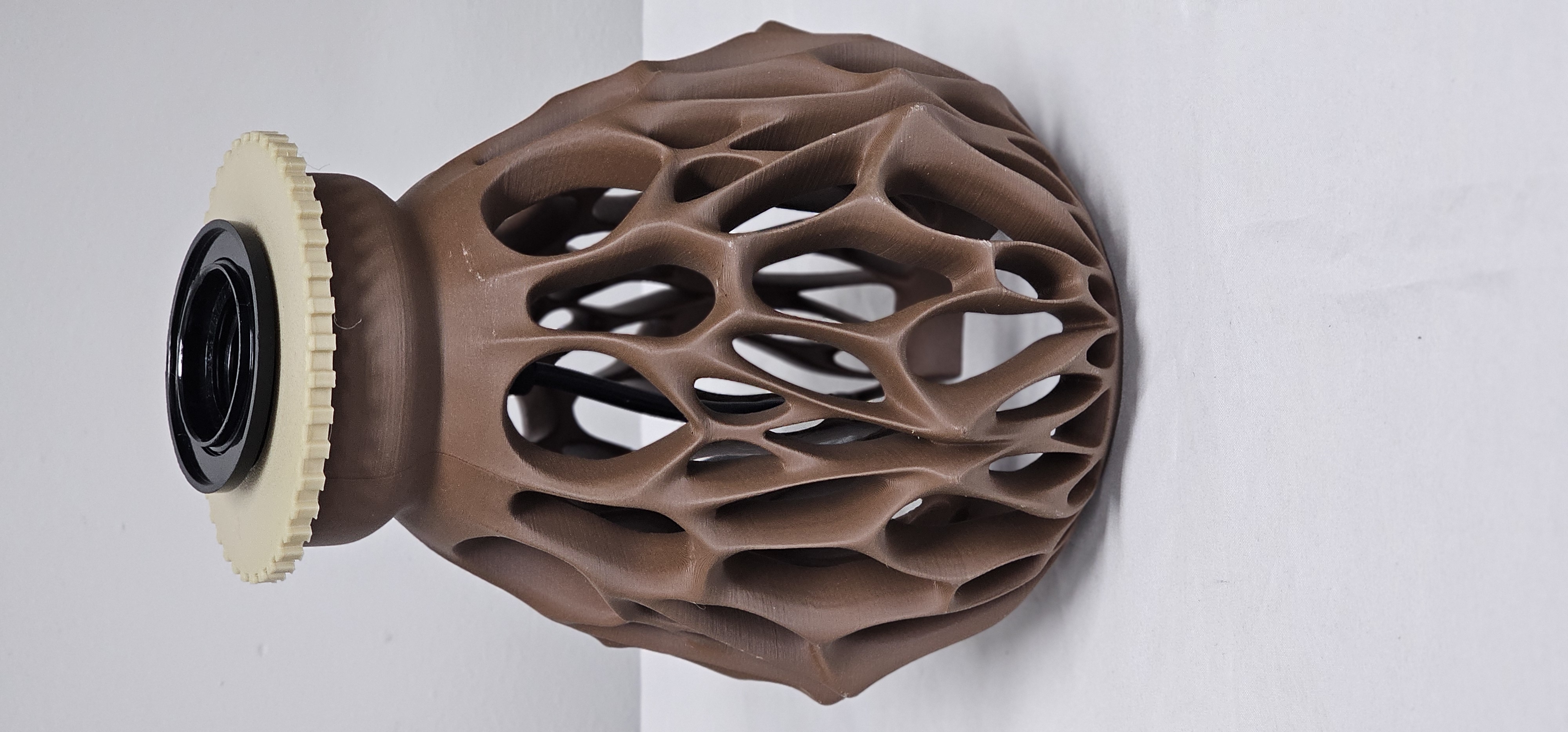 This table lamp is 3D printed and ready for your LED bulb. It is designed by Modern Machine. Lamp base stands approximately 8 inches high. Lamp base is 3D printed in a brown color. Only use and LED bulb with this lamp.
