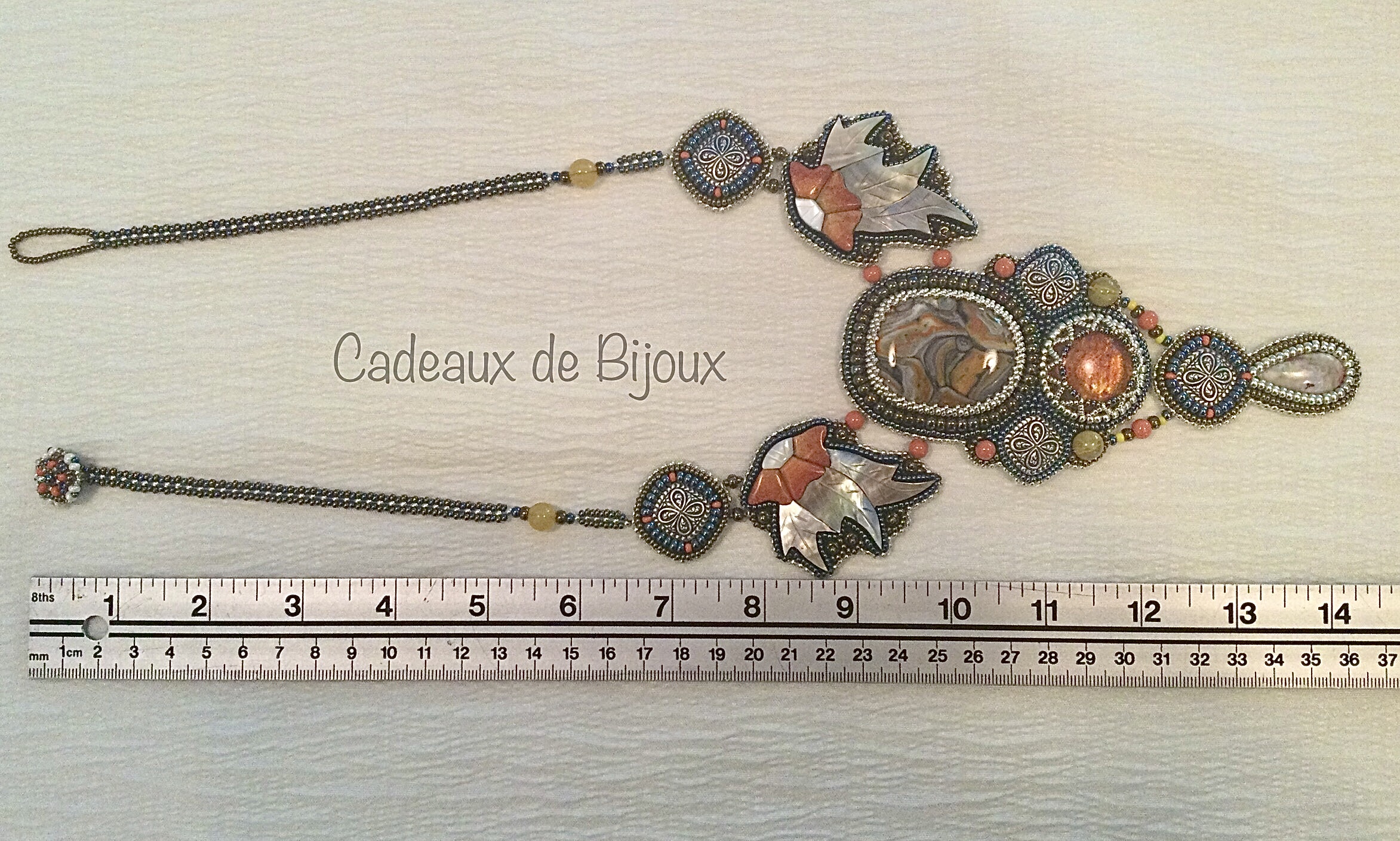 Every care has been taken to assure your piece will last for generations. However calamities can occur. Your piece will be restored once for free. Be aware that an exact restoration may not be possible due to extent of damage and the limited availability of certain beads or stones, and will be at my discretion. Just contact me via email at embroideredjewelry@gmail.com detailing the issue and pay round trip shipping.