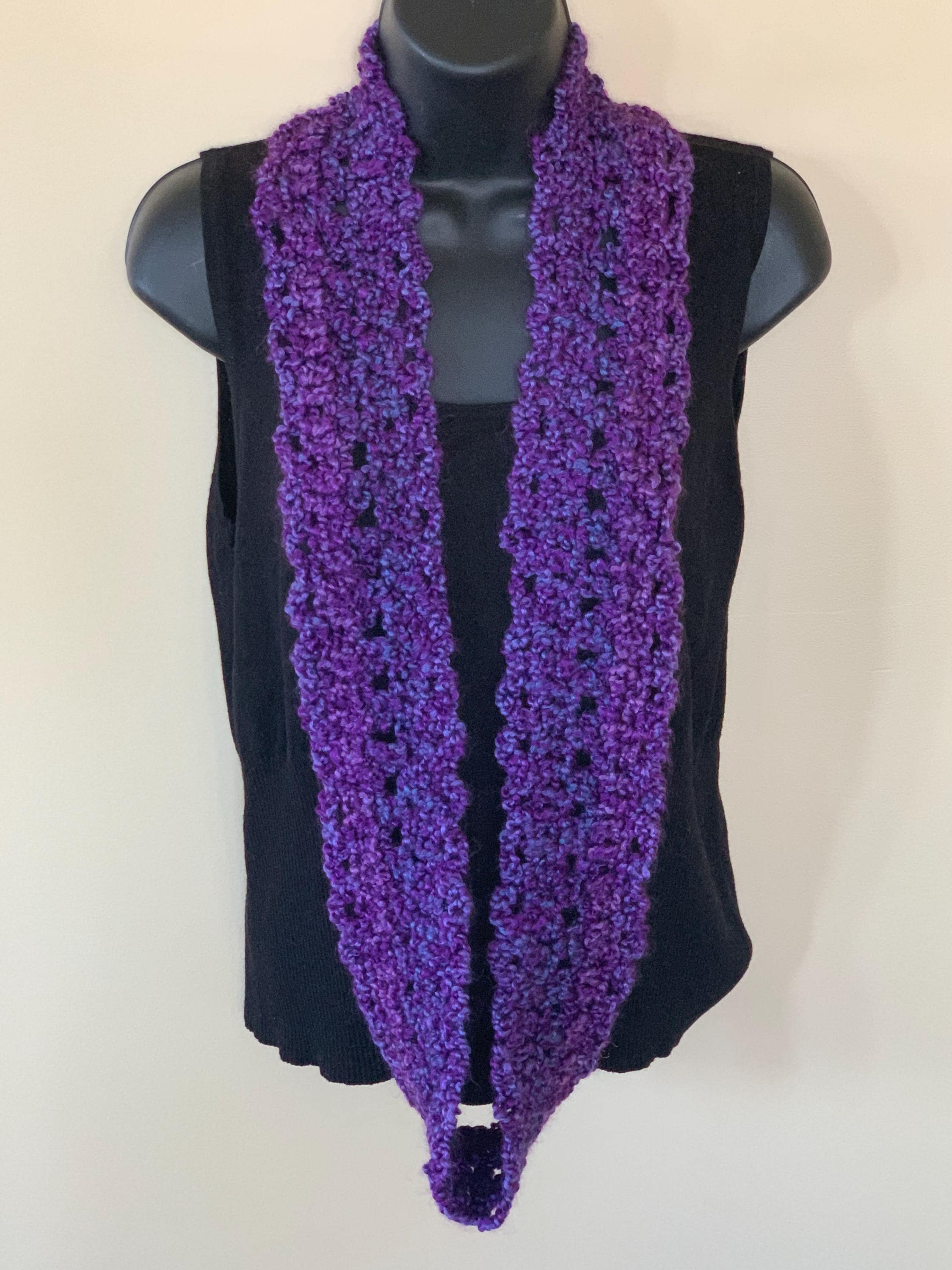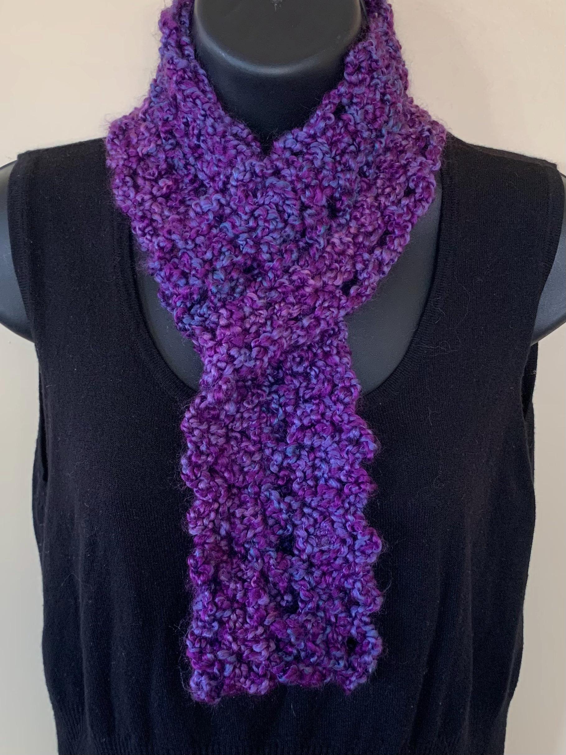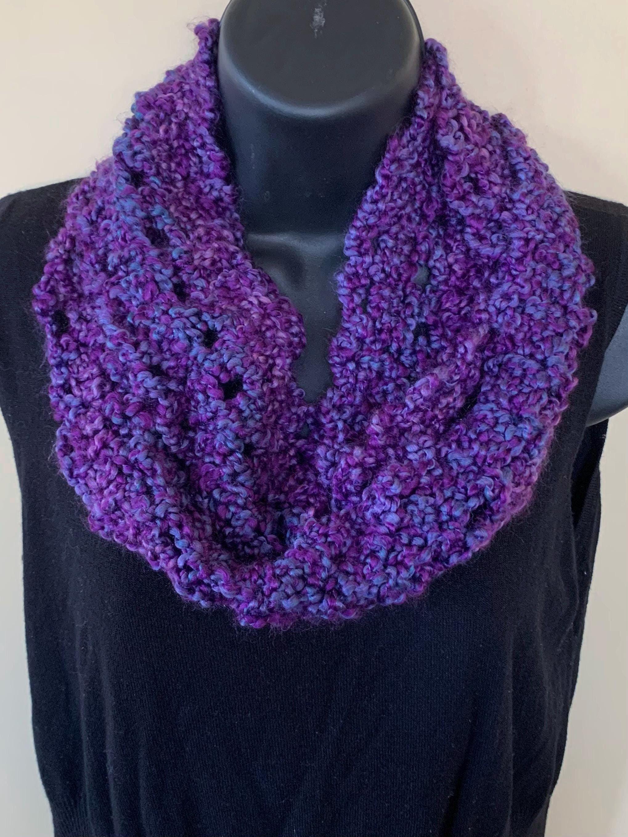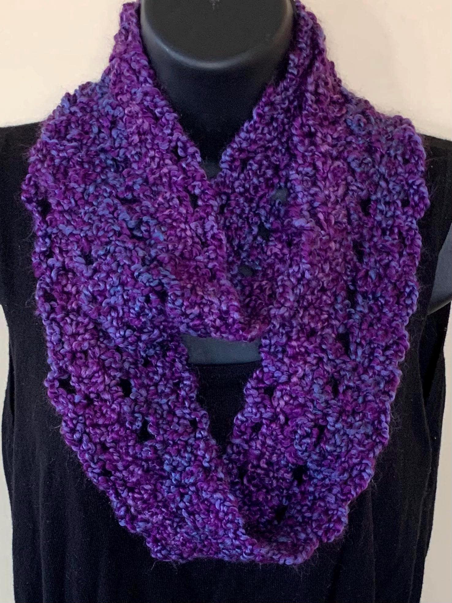 This is an original infinity scarf. I designed my own pattern and made it by hand with rare Lion Brand Homespun yarn. It's an extra special and unique find gift!