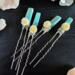 Romantic Victorian elegance meets modern mysticism in these soft Amazonite hair forks.
