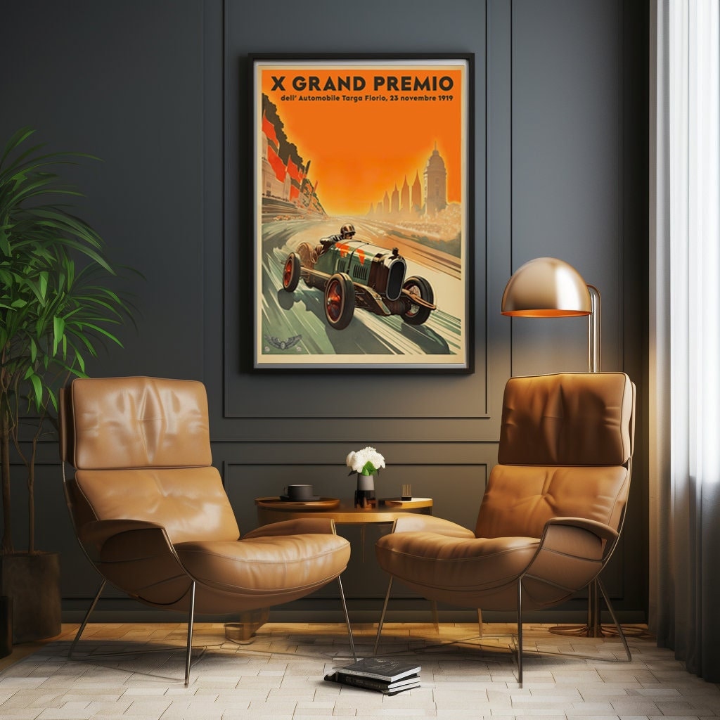 Vintage 1919 Italian Grand Prix racing Poster Targa Florio Race Car Print, Race Fan Gift idea Executive Office decor Sicily Italy race Decor