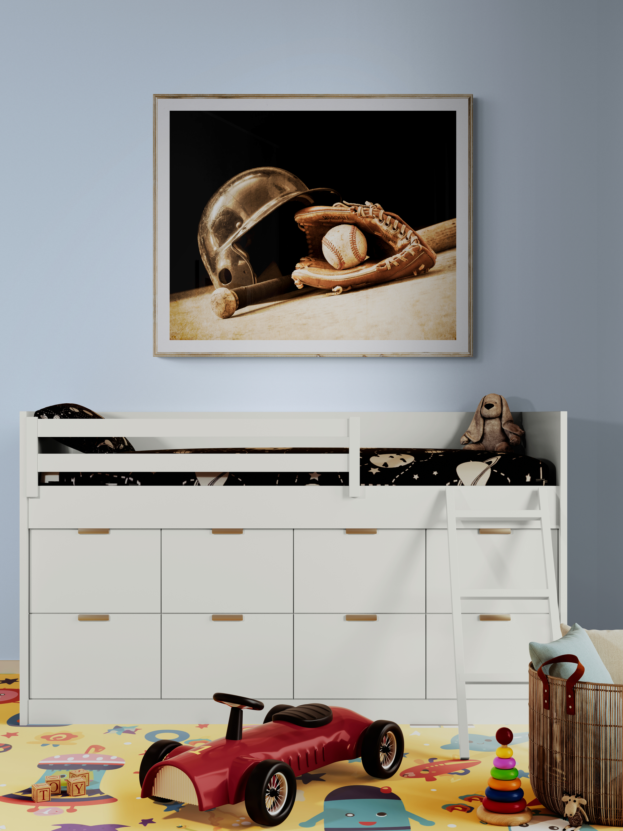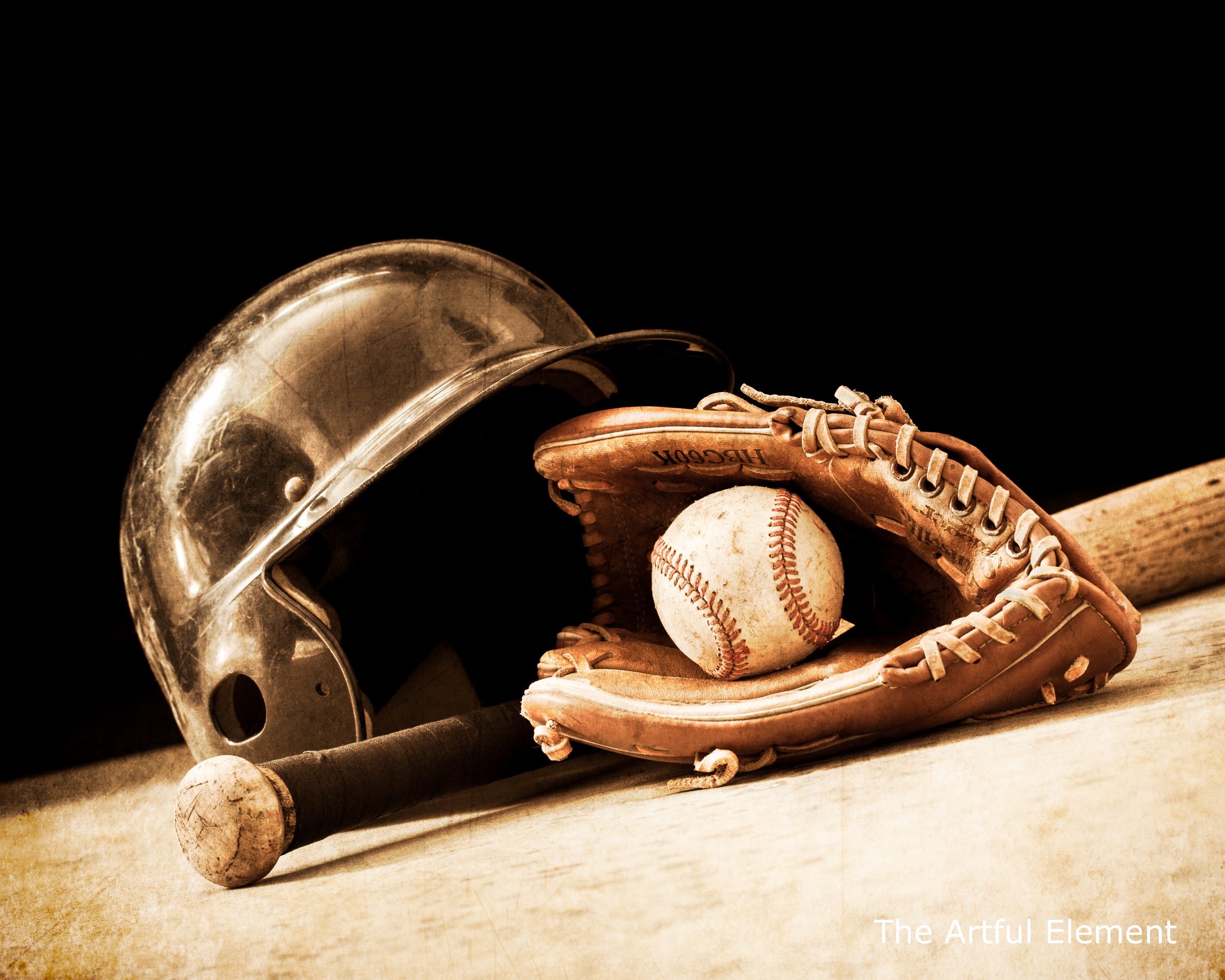 Original photograph of vintage baseball gear—perfect printable wall art for boys' rooms, game rooms, or man caves. Instant digital download!