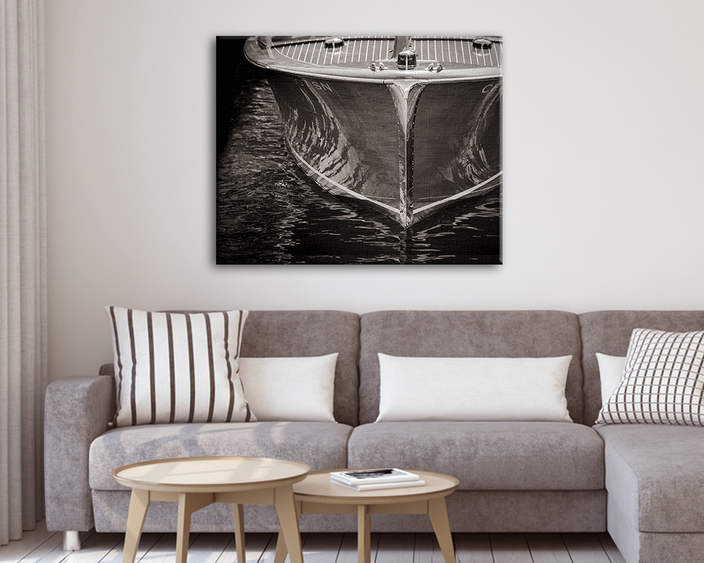 Original fine art photograph of a beautifully restored, classic wooden Chris-Craft boat at rest in the harbor. A great addition to any nautical themed decor!