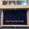 This is a handmade, one of a kind, trinket box with dark purple velvet base has a pool drawer with a golden embroidered phrase open thine heart wide on dark purple velvet as well. The trinket box has a hinged lid with a glass window inside there are nine compartments the compartments include the following: Resin rose brooch, sculpted, alligator skull, emerald perfume bottle, simulated, kaleidoscope, decorative hairpin, a small, spoon, a metal thimble, a polished stone necklace, and a pair of distressed sewing scissors