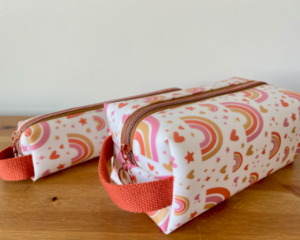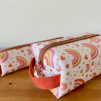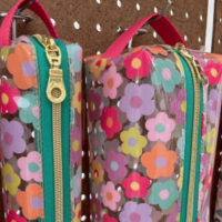 Our bestselling makeup pouch. These pouches are great for makeup, toiletries, skincare products, art supplies or anything that leaves a mess. Vinyl inside and out, they're a breeze to keep clean - just wipe clean with a damp cloth or a little soap!