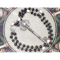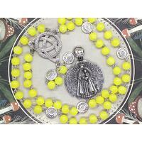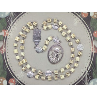 As many of my components as possible are taken from irreparably broken jewelry pieces and rosaries. Those pieces are not usable as they are, but the beads, pendants, and medals are completely fine. By deconstructing the broken pieces and incorporating them into my rosaries, much is saved from the landfill.