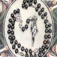 This 5 decade, goddess focused rosary is made up of 6 mm olive green jade beads.