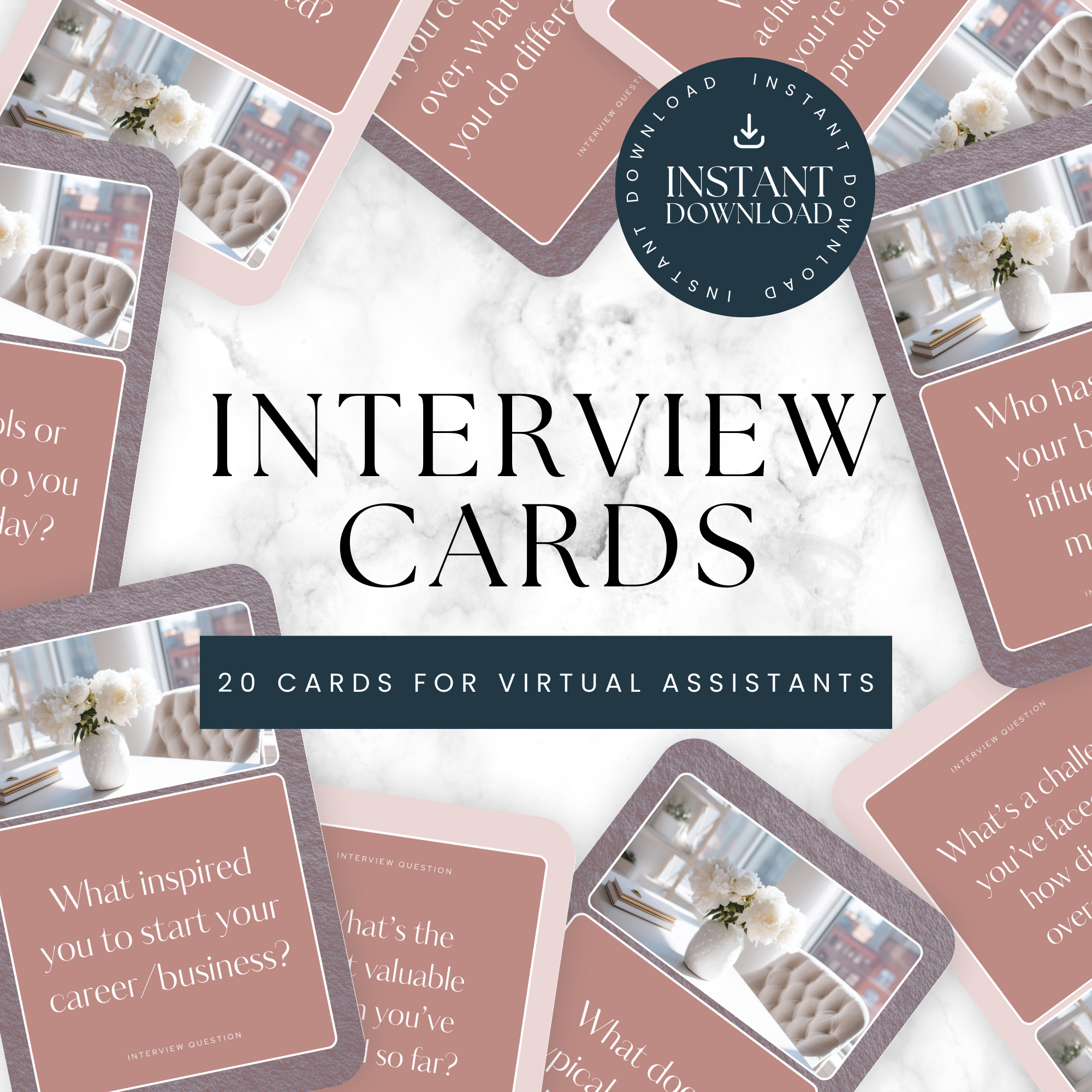 Set your business up for success with these Virtual Assistant Interview Cards—the ultimate printable solution for work from home hiring, onboarding, and client management!