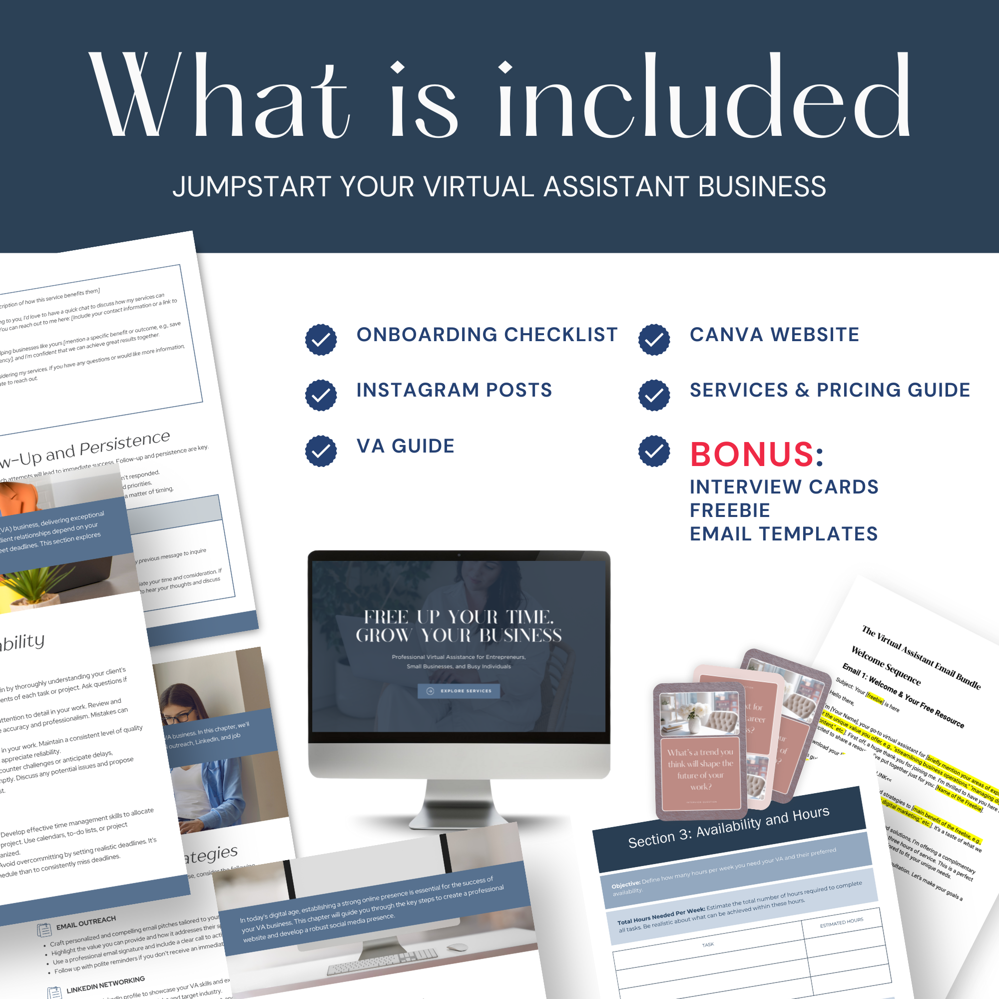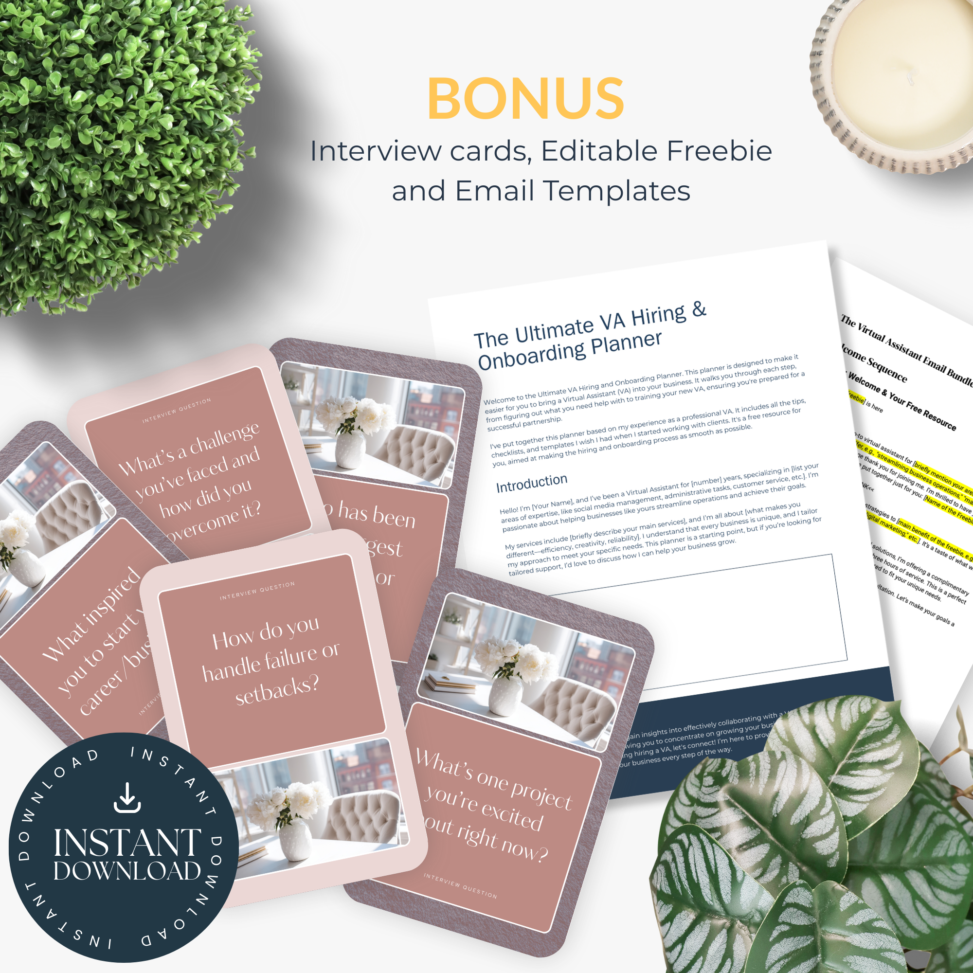 Bonus: VA interview cards, Editable Freebie and Email Templates for winning clients and streamlined communication