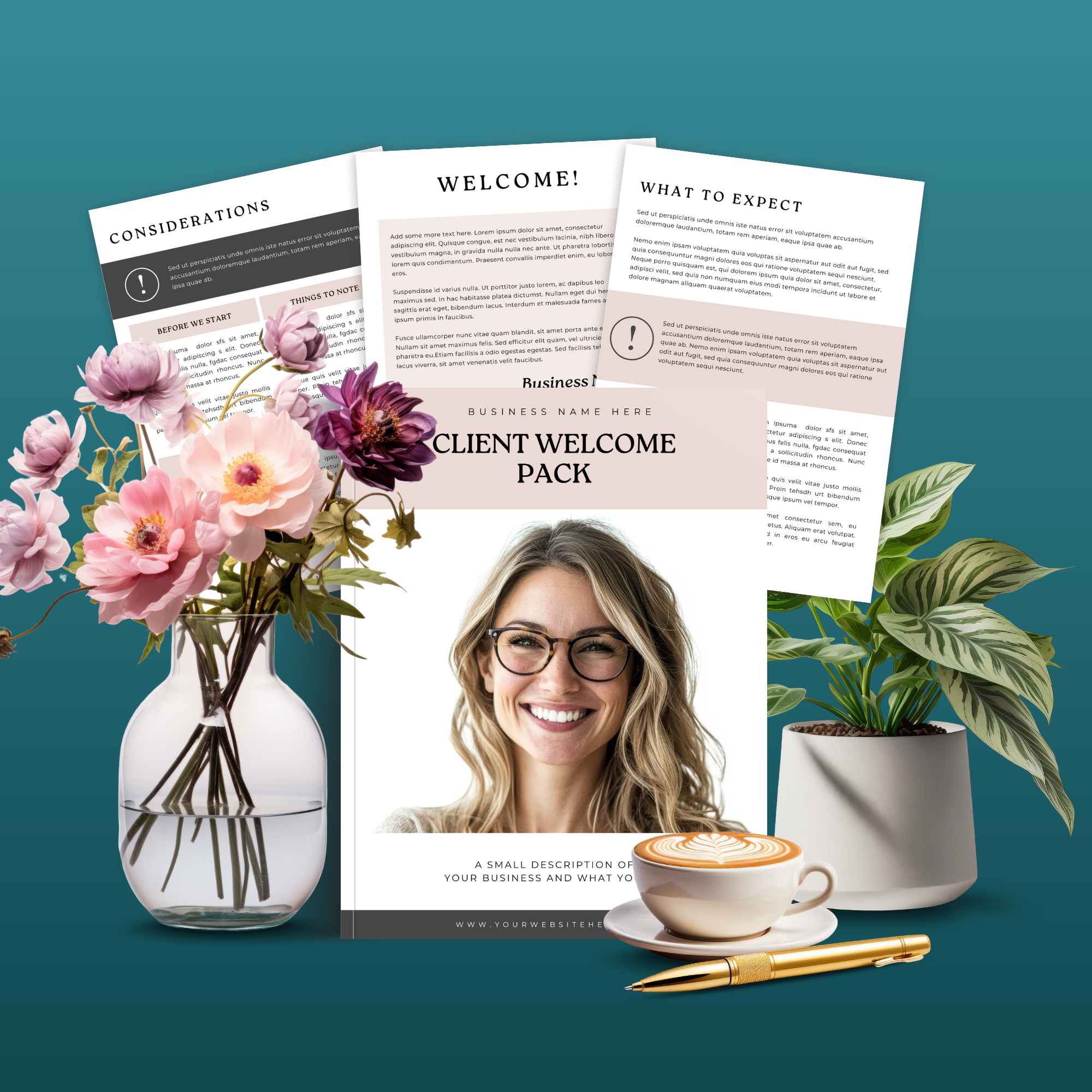 This Canva template includes pages to help you onboard clients smoothly, including:
