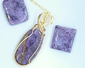 Valentine's day gift , 14KGF Charoite Wire Wrapped Pendant Ne...
