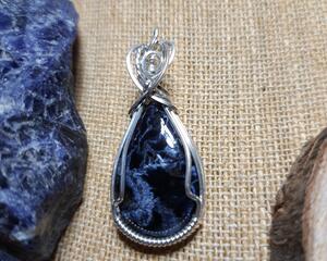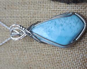 Sterling Silver Larimar Wire Wrapped Pendant, Larimar Necklac...