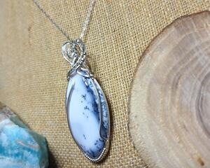 White Dendritic Opal Sterling Silver Wire Wrapped Pendant, St...