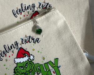 Zip up canvas bag with zipper pull Feelin extra Grinchy