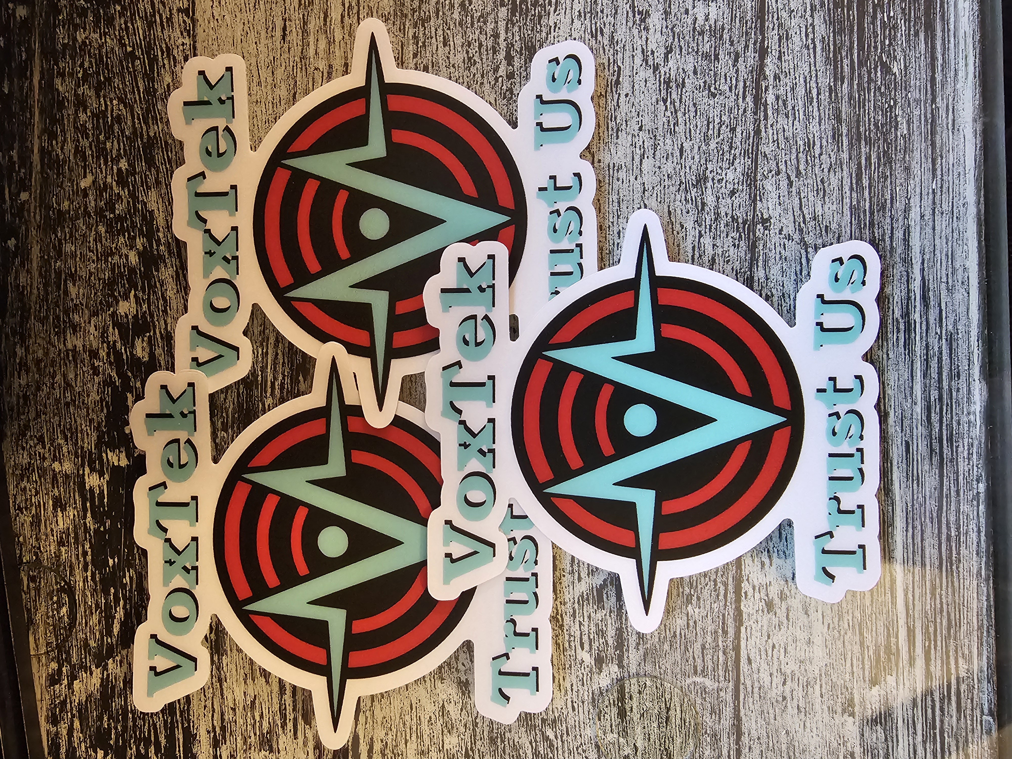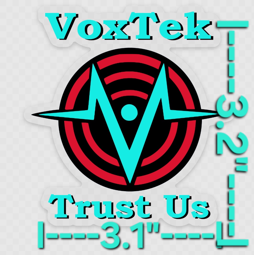 This 3.2" sticker showcases the iconic Vox logo, complete with its electric blue wave and hypnotic red rings pulsing behind it. Bold, vibrant, and instantly recognizable, this design captures that signature tech-slick energy with crisp detail on a clean white base.