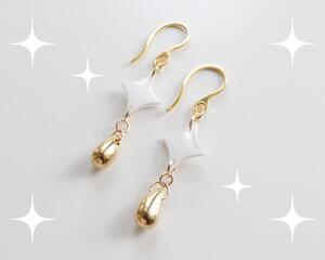 Star Earrings Sparkle White & Gold Teardrop Earrings Waterpro...