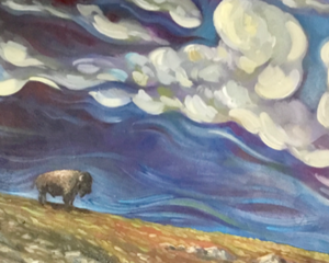 BISON LANDSCAPE CHRIS WAKEFIELD ORIGINAL OIL ON CANVAS "ALONE"
