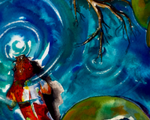 Koi Fish Original Chris Wakefield Watercolor Painting “Koi Po...