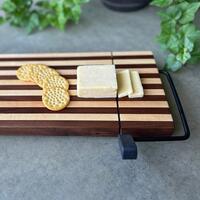 DETAILS: This cutting board is made out of Walnut and Maple wood. It measures 6x14x1 inches. - Handcrafted from start to finish by us on our farm in Central Kentucky - Cheese Slicer Built In - Slip resistant rubber feet - Small Charcuterie Board (Cheese Slicing Board) - Serving Tray (Small Cutting Board)