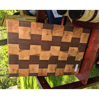 These are made out of walnut boards, which due to the natural material will have slight variations in the grain and placement of knots in the wood. The "distressed walnut" variation will have more knots and swirls to the grain pattern. Our "straight grain" option has less knots and matches more typical wood furniture.