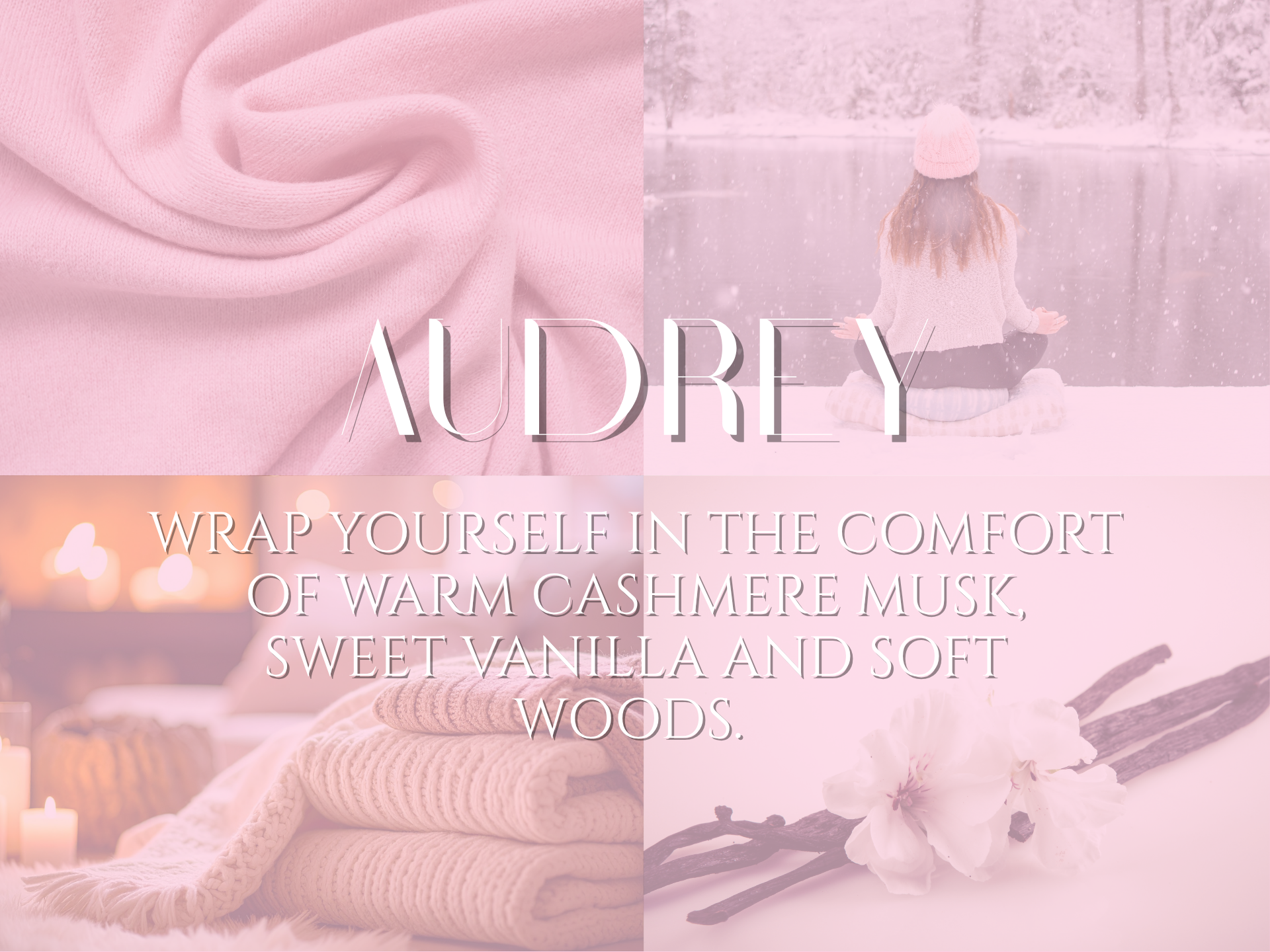 Meet Audrey, the definition of effortless grace. This scent captures the warmth and charm of classic elegance - wrapping you in sweet vanilla, soft woods, and warm cashmere musk for that touch of modern allure.