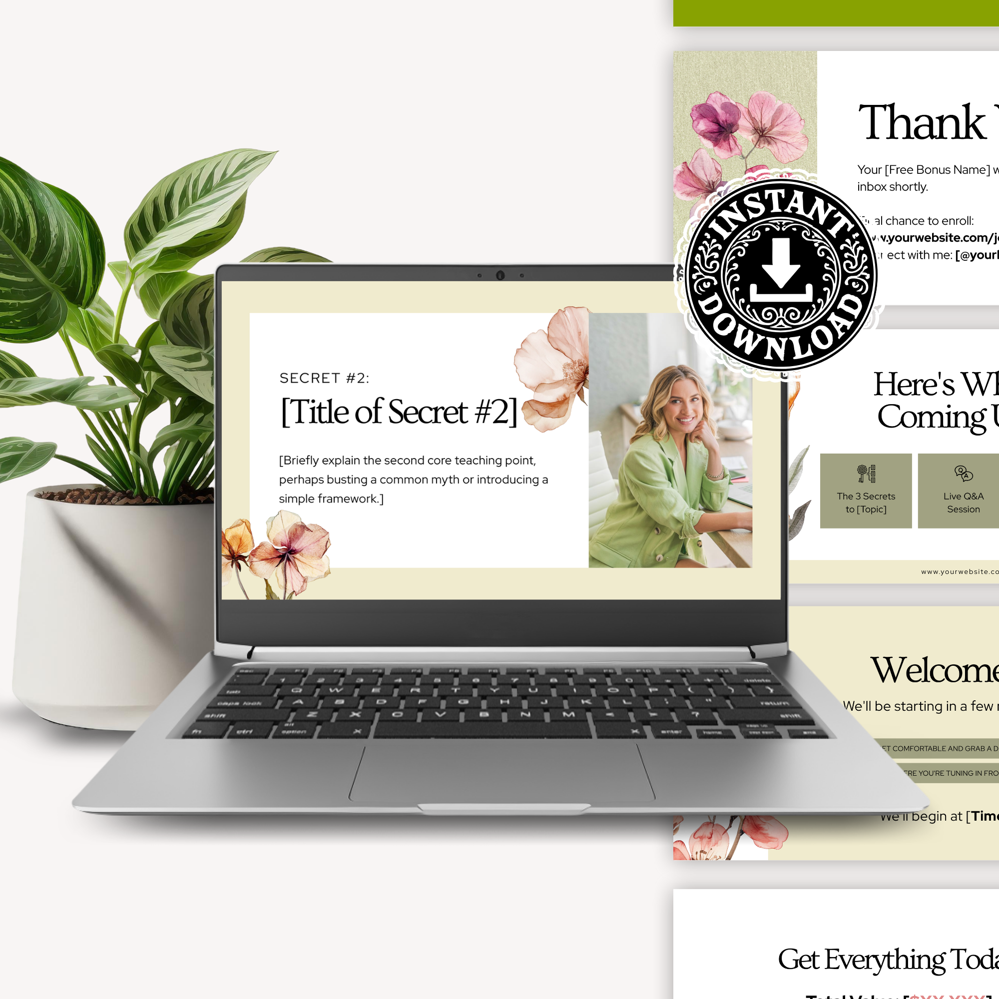 Create professional, eye-catching webinars and virtual events with this 21-page Canva Webinar Template! Designed for small business owners, coaches, and course creators, this presentation kit features a minimalist deck of editable layouts, panels, and pages—perfect for business meetings, workshops, and seminars.