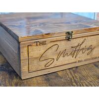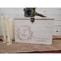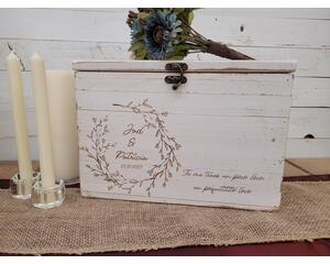 These very special rustic card boxes are a MUST at your wedding, anniversary, first birthday, graduation or any event. These are not purchased at a craft store and personalize like most card boxes sold on Online. These barn wood card boxes are made from rustic barnwood rough cut cedar, cleaned up, yet still left slightly rustic and rough for the old barn wood look. Handmade by me in my little wood shop in Minnesota and engraved with a design that will last a lifetime for your most cherished memories and keepsakes.