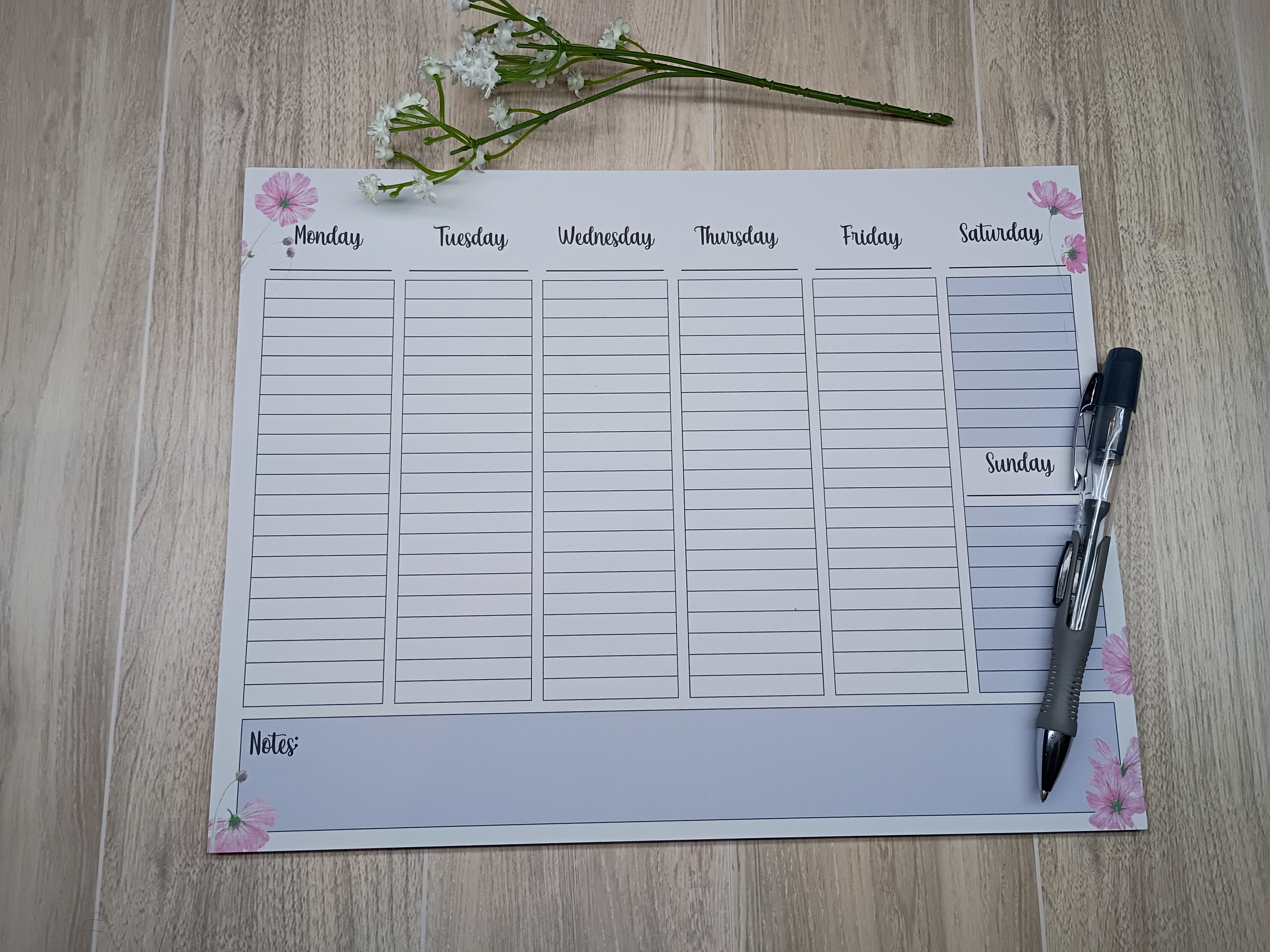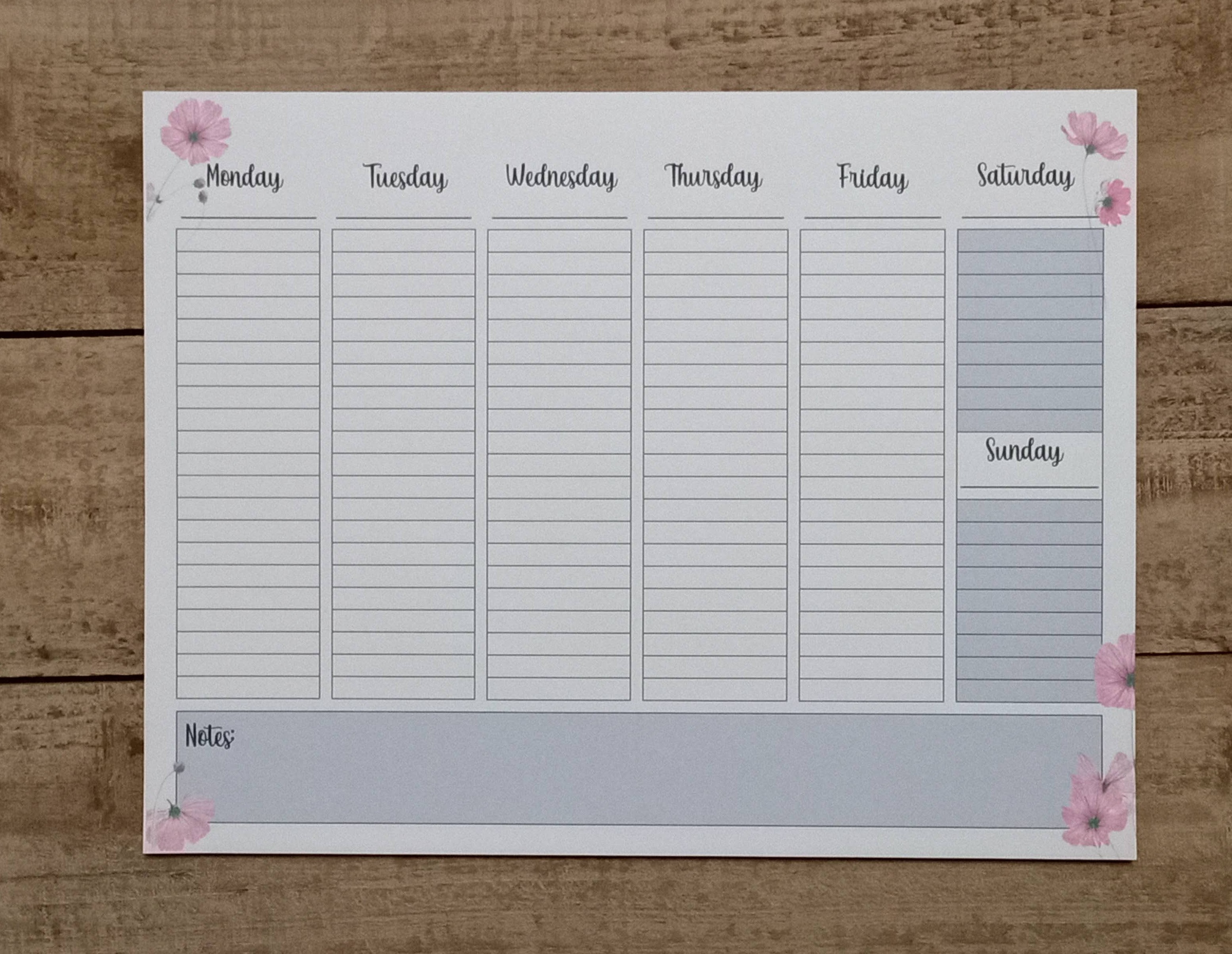Plan your week with ease and elegance. This floral tear-away notepad features a soft pink and lavender design with plenty of space to organize your days, jot down goals, and stay on track—all in one beautiful place.