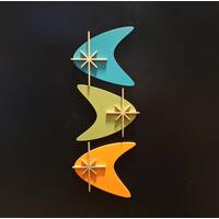Add a touch of Mid Century Modern art to your home with this beautifully Handmade Wood Welcome Sign. The design features an atomic starburst design that perfectly captures the essence of the 50s and 60s era. Measuring approximately 17 inches in width, 10 inches in height, and 3\4 inch in depth, this MCM Sign looks fantastic on any front door or entryway.
