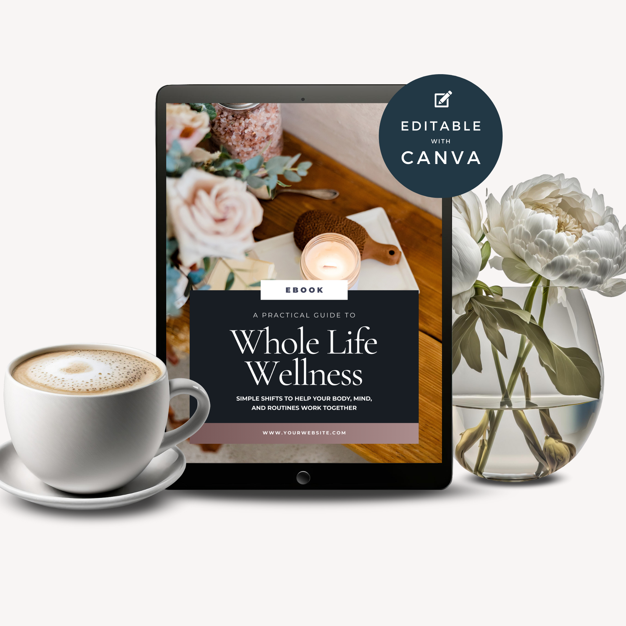 Help your clients finally bridge the gap between knowing what to do and actually doing it. This professionally designed Wellness Coach eBook template makes it easy to educate, inspire, and guide clients through the core pillars of everyday wellbeing — all in a friendly, approachable format.