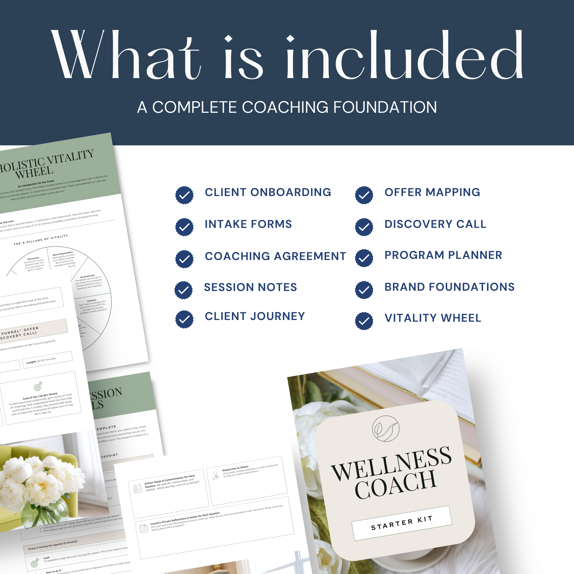 Designed for wellness coaches, holistic practitioners, and life coaches, this all-in-one kit helps you move from scattered ideas to a clear, organized client journey - without reinventing the wheel.