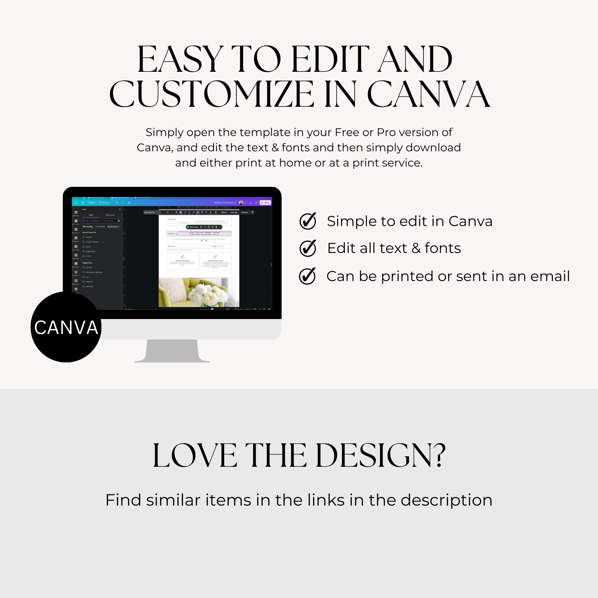 ♥♥ PLEASE NOTE - this is a digital download / template. No physical product will be shipped. Once you have placed your order you will receive a link to edit your template online using the free software Canva. No waiting for designers - get access immediately.