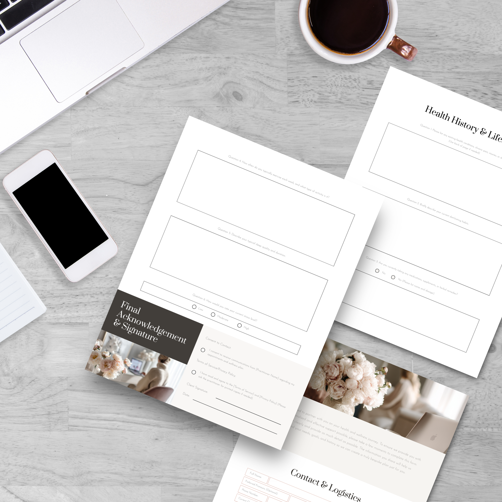 This beautiful, printable PDF helps your new clients share their goals, history, lifestyle details, and consent - so you can start sessions prepared and confident.