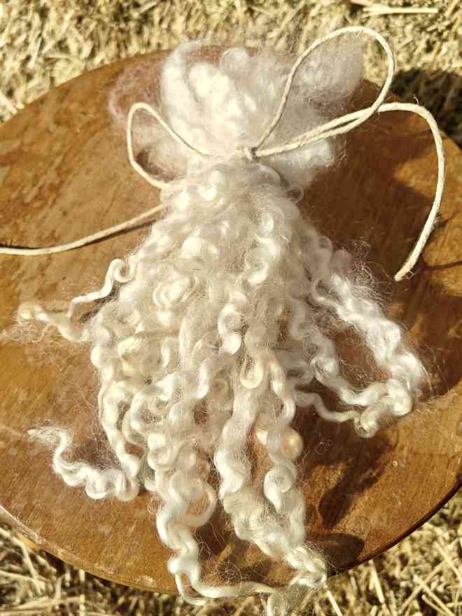 1 oz of curly Wensleydale wool locks, gathered directly from our pasture raised flock, perfect for many crafting projects, from felting, to spinning, to hair for BJDs! Locks are approximately 5 - 6 inches and undyed, displaying the natural variations in the sheep's colors White and dark silver available.