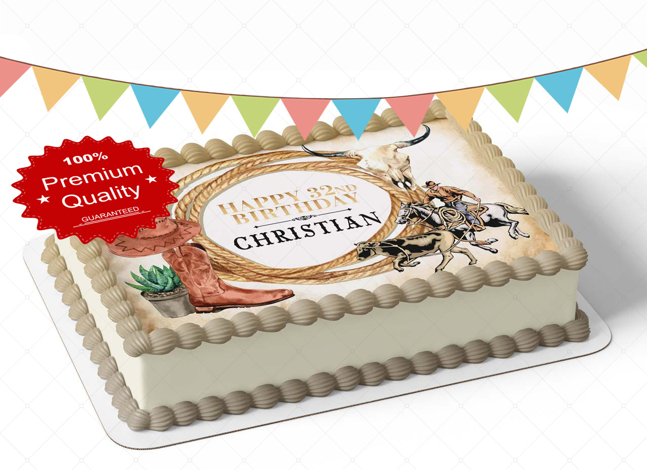 Western Cowboy Boots Ranch Life Edible Image Themed Edible Birthday Party Cake Topper Sheet Edible Sticker Decal