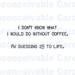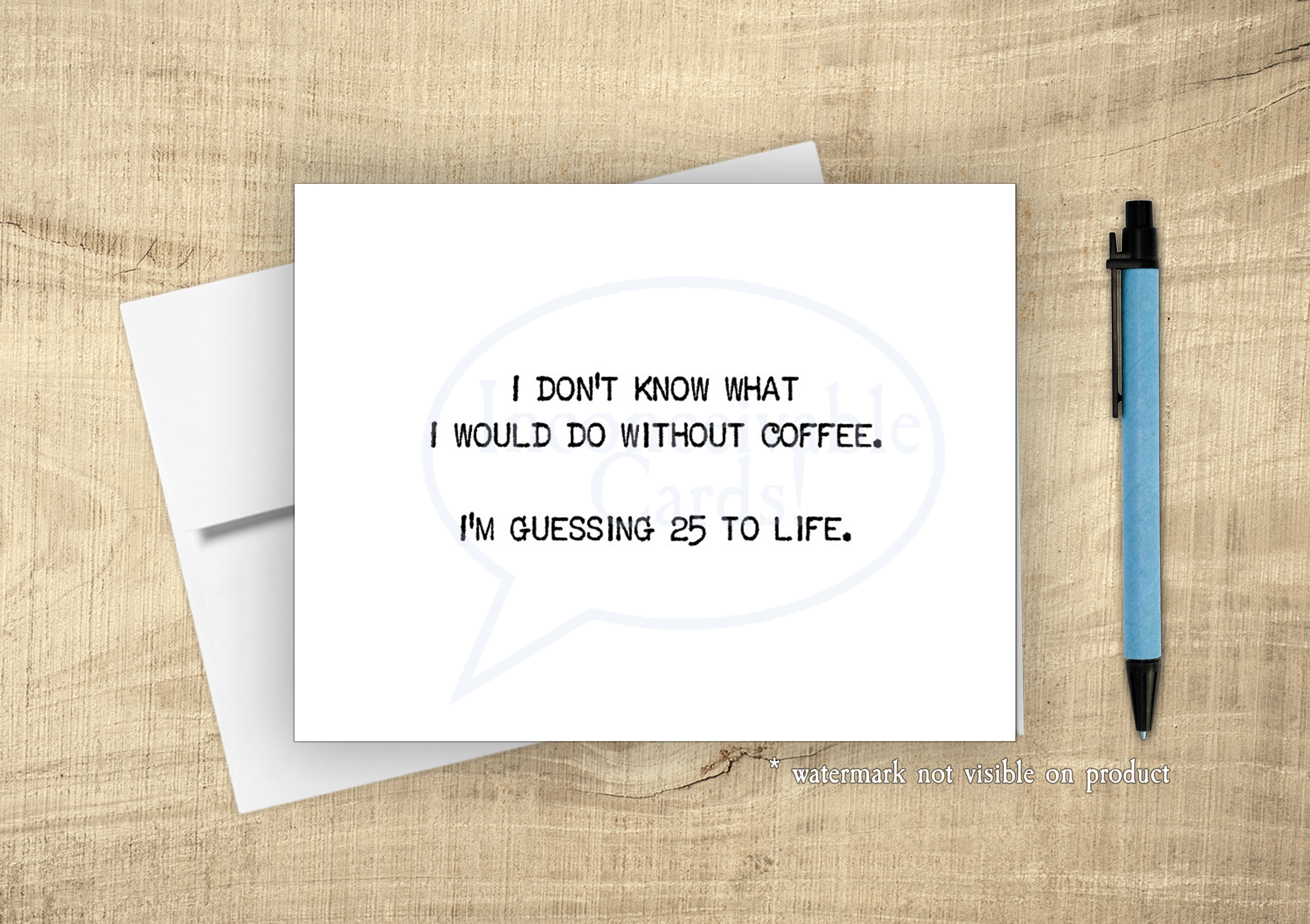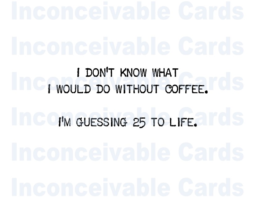 Front Text: “I don’t know what I would do without coffee. I’m guessing 25 to life.”