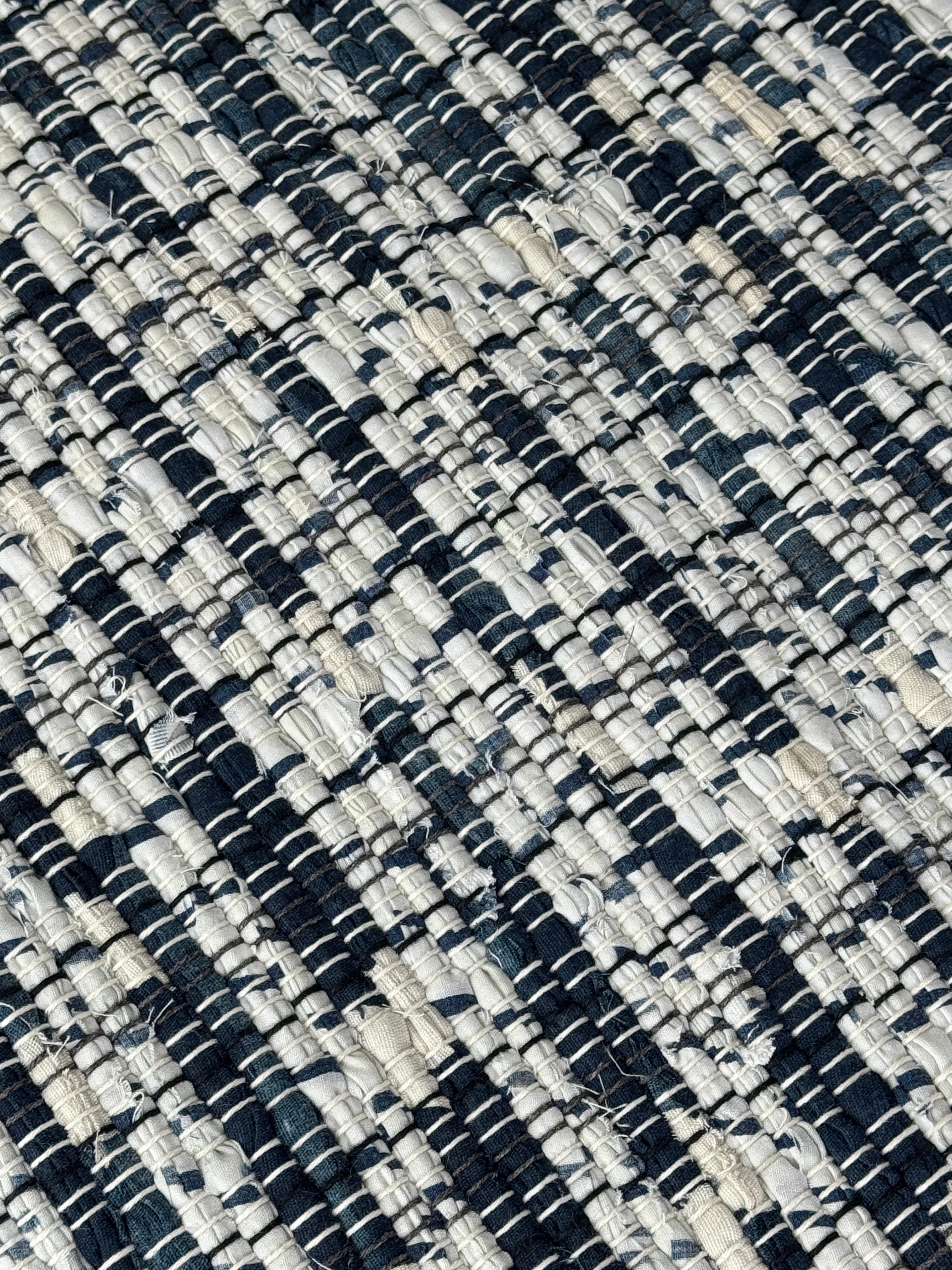 Discover the extraordinary world of recycling with my remarkable rugs. Crafted from once-beloved household textiles, these rugs breathe new life into forgotten fabrics. Each rug is a captivating tapestry of repurposed wonders, blending sweaters, socks, shirts, jeans, bedding, and beyond. Each rug lends its own uniqueness due to the blend of textures and colors.