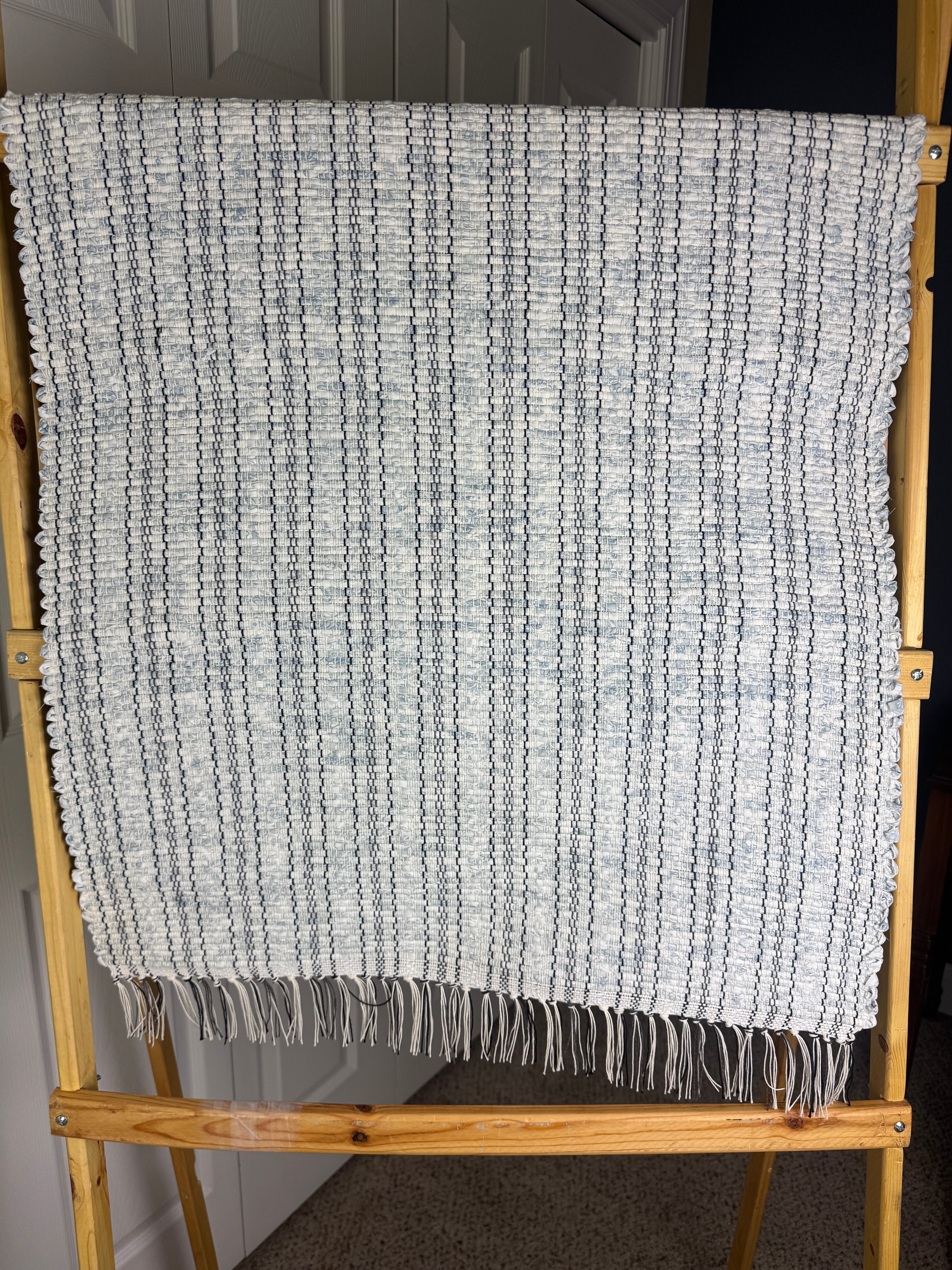 White and Pale Blue Handwoven Rag Rug 25" x 35"
