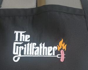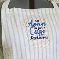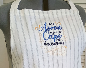 The cute aprons and hats have been embellished with embroidery. Making a great way to wrap a bottle gift of any kind!