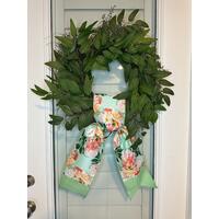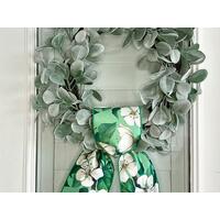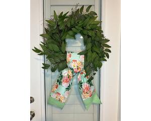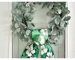 Bring a touch of freshness and elegance to your home with this White Eucalyptus & Berry Wreath, beautifully accented with a hand-tied blue and yellow D. Stevens ribbon bow. Designed with lush white eucalyptus leaves and seasonal berries, this versatile wreath is perfect for front doors, mantels, walls, and special occasions.