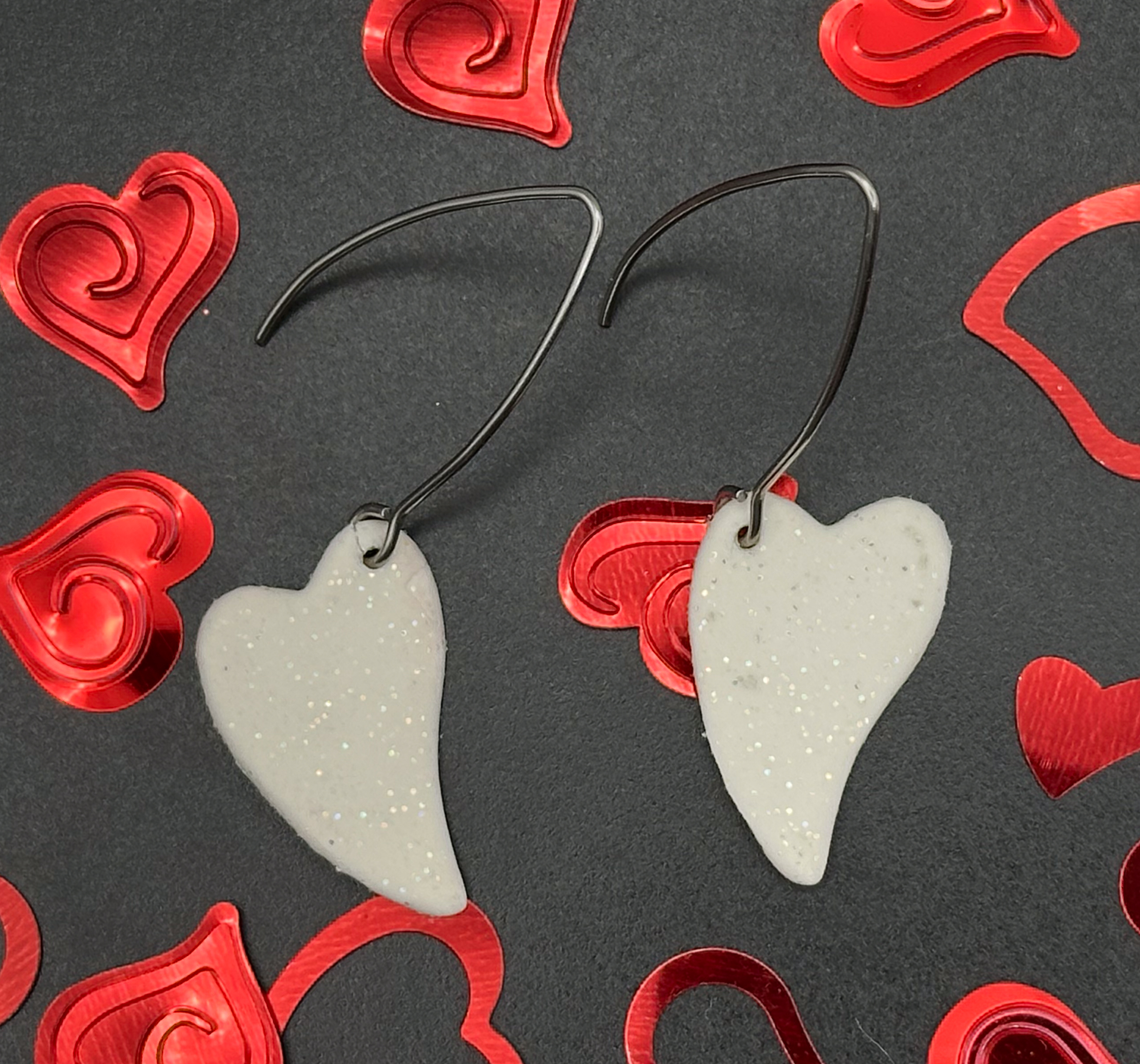 Minimalist and chic! These asymmetrical white hearts with a subtle sparkle are perfect for adding a touch of elegance to any outfit.