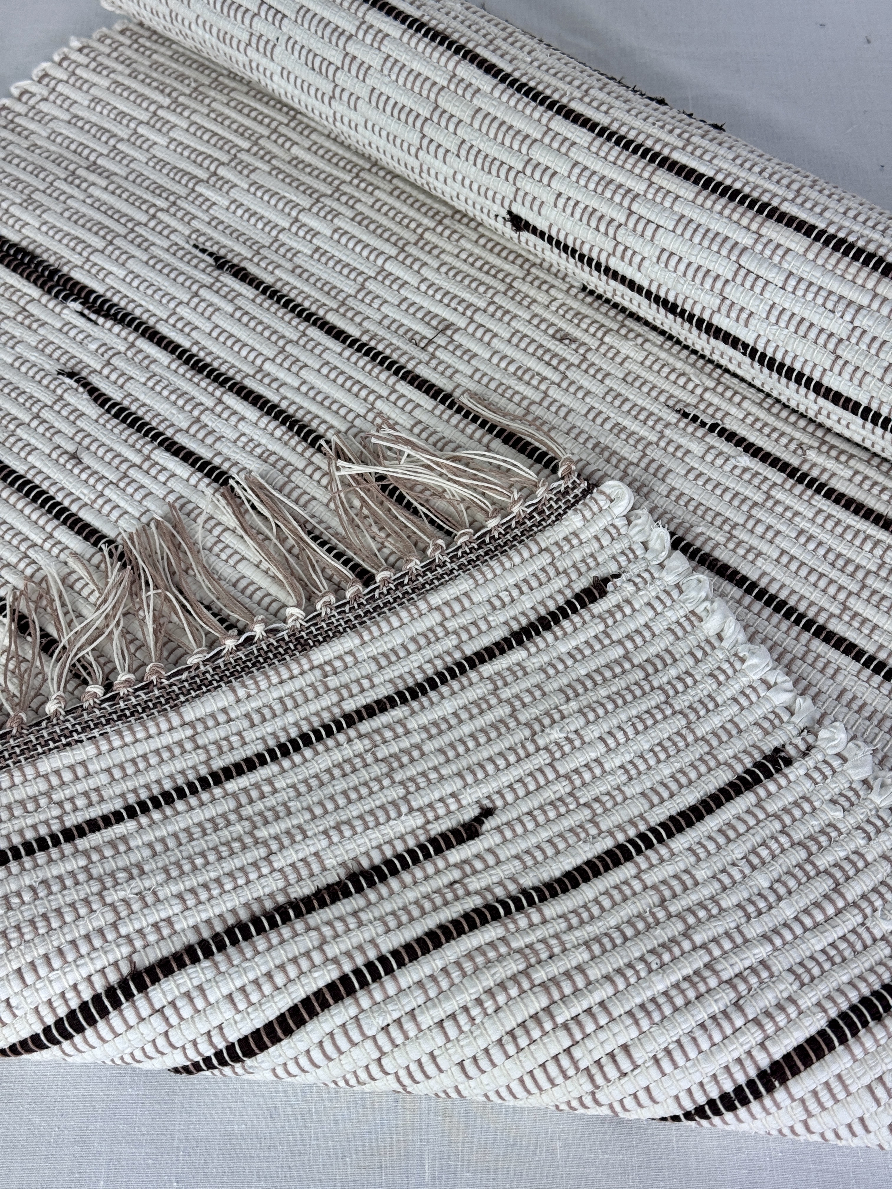 White w/Brown Accents Handwoven Rag Rug 25" x 56"