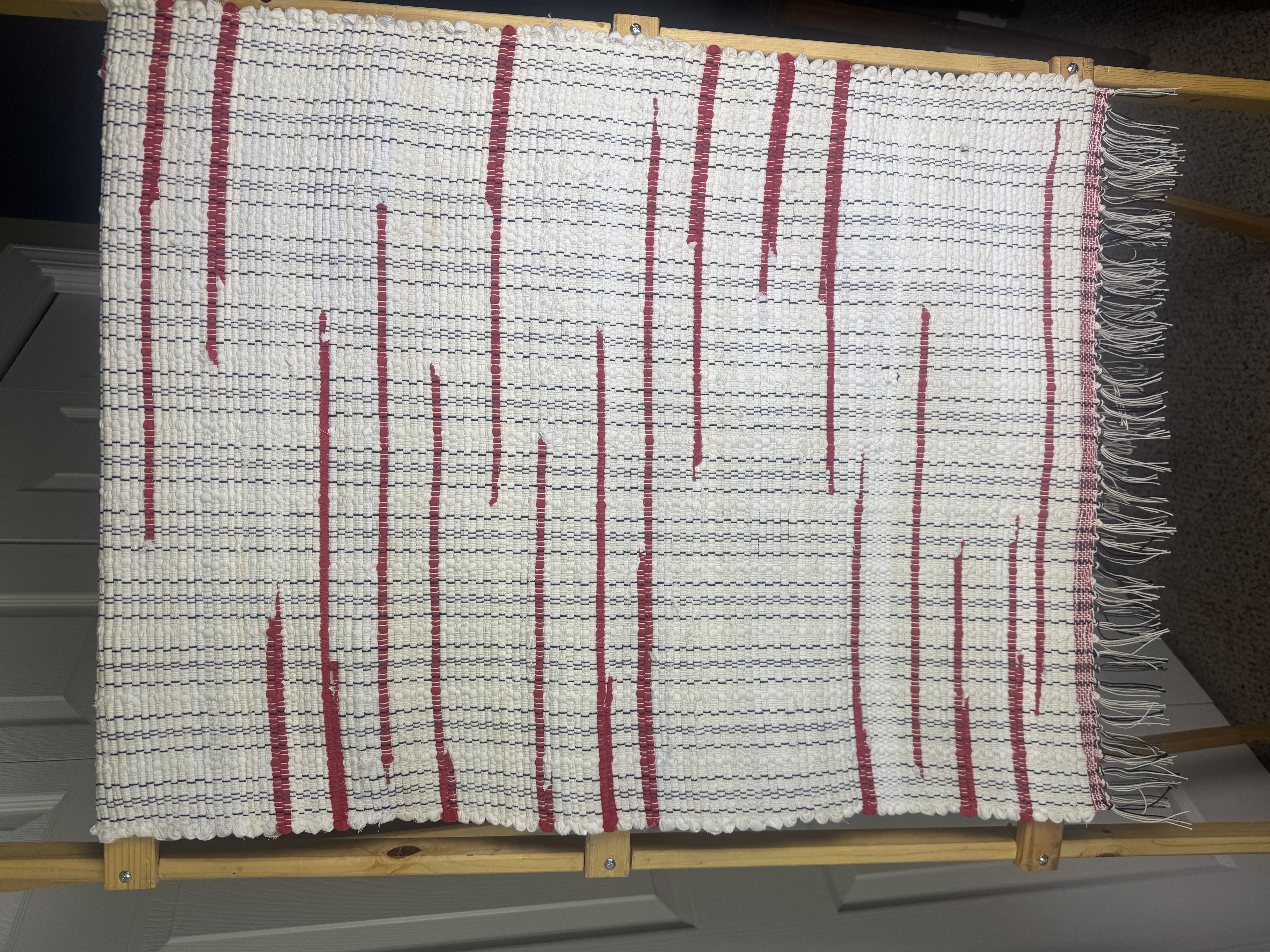 Handwoven on 2 harness floor loom in my home