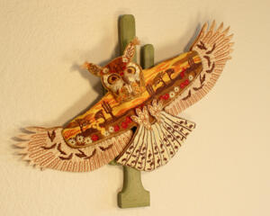 Great Horned Owl embroidered fiber art