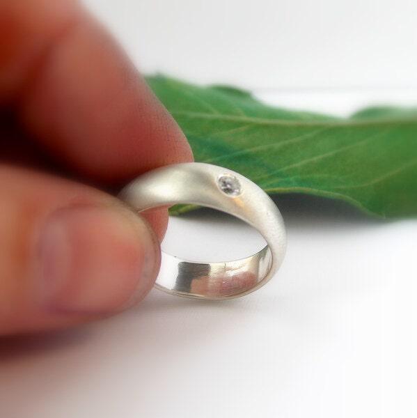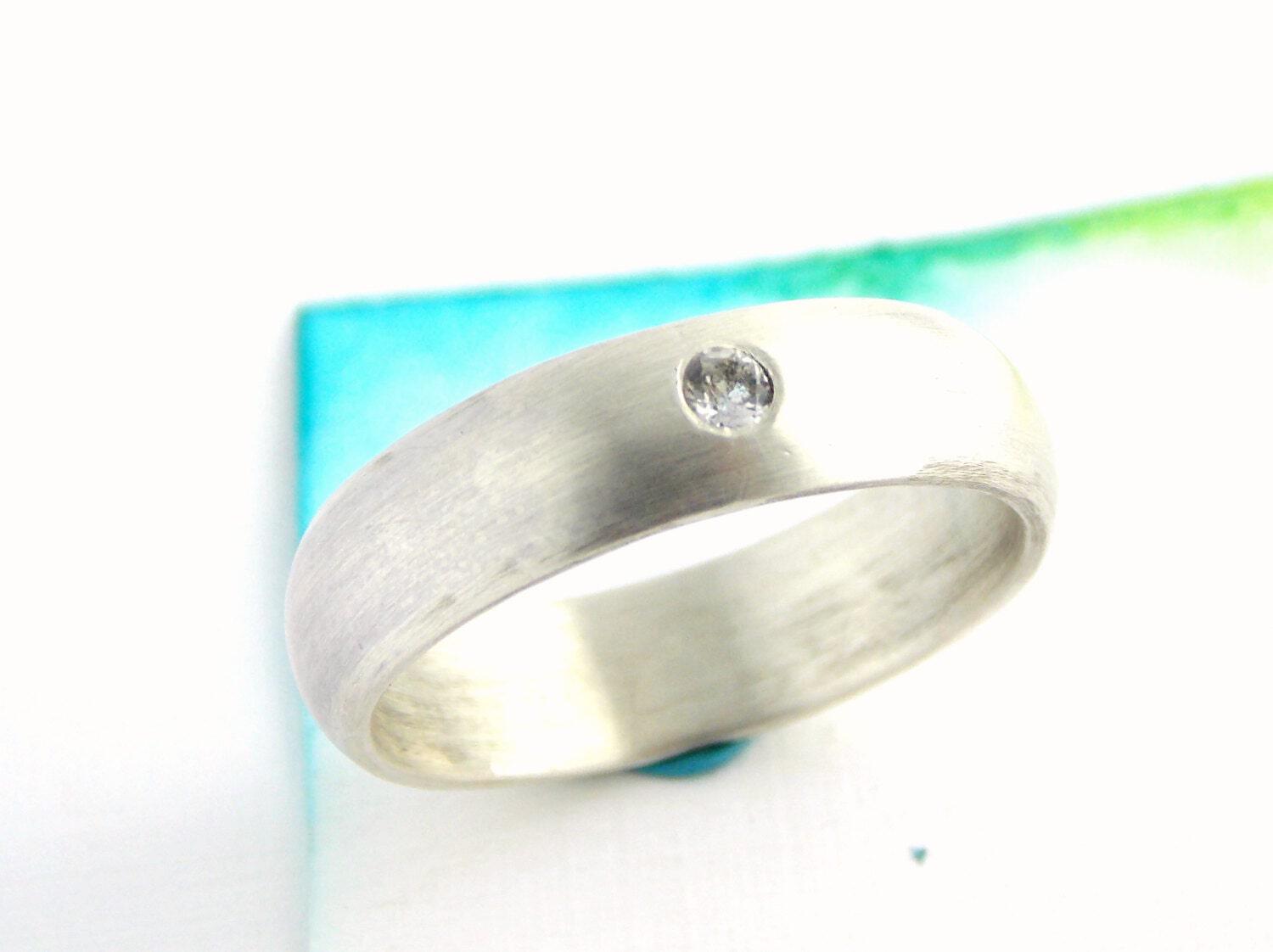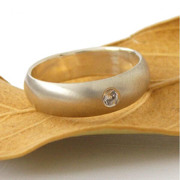 This Wide Band Low Dome Ring is made from sterling silver ring is set with a white topaz stone. The wide band can be left with a matte, brushed finish or polished. It is a simple yet elegant ring. This sterling silver ring is a simple design that will remain a classic. It's a great everyday ring or would even make a nice wedding band for a bride or groom.