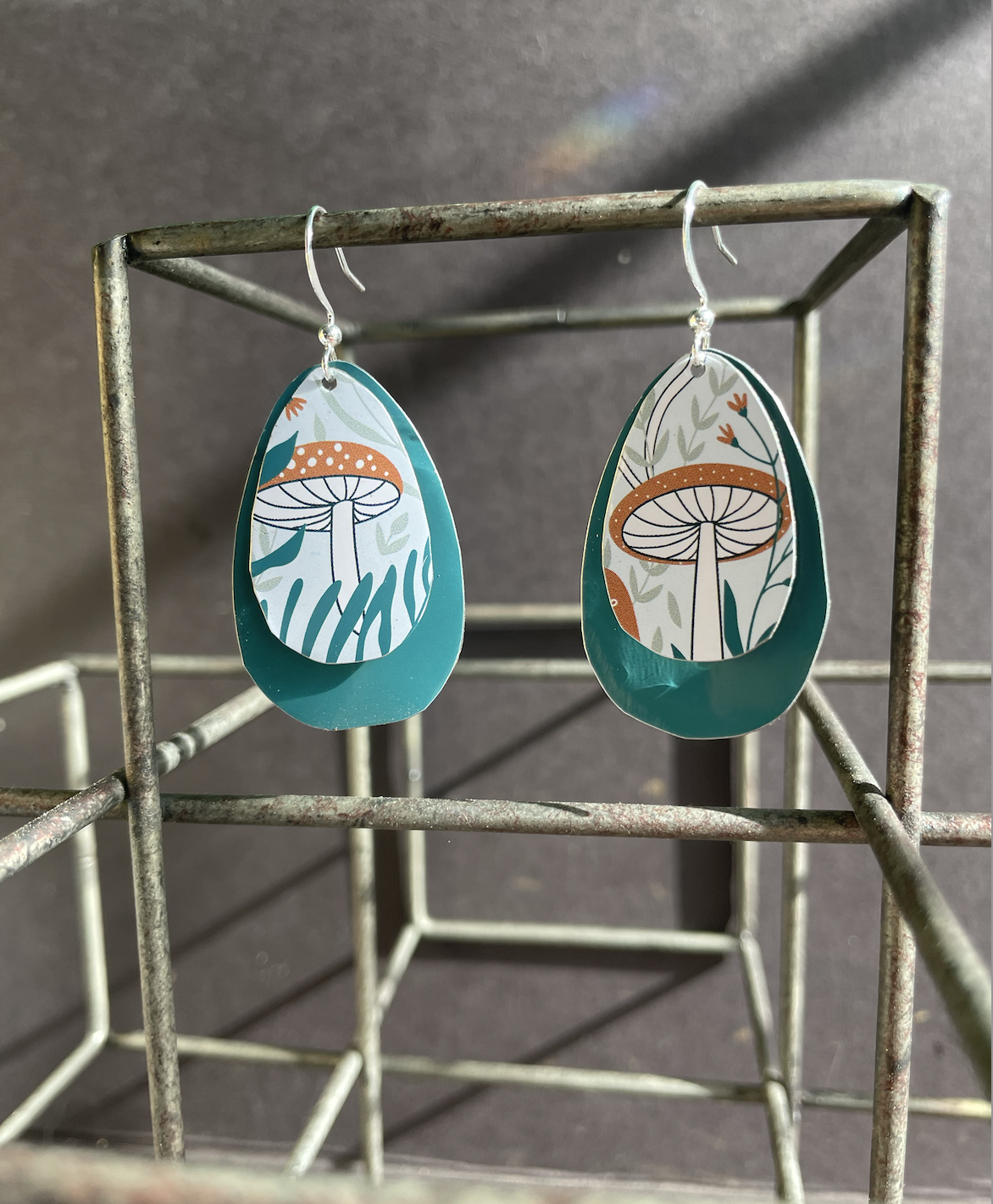 Mushies! These earrings have silver-plated earring findings and a rubber stopper on the back so they won't fall out of your ears.