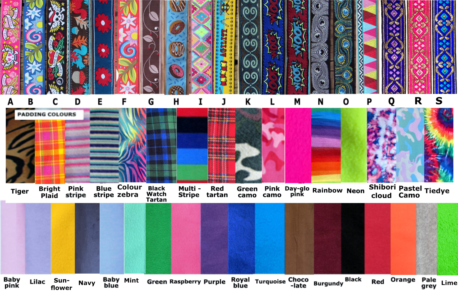 A choice of lots of lovely brocade designs run along the length of the collar …...and you can choose a fleece padding colour to match or contrast. Choose from lots of designs: (See 2nd photo)