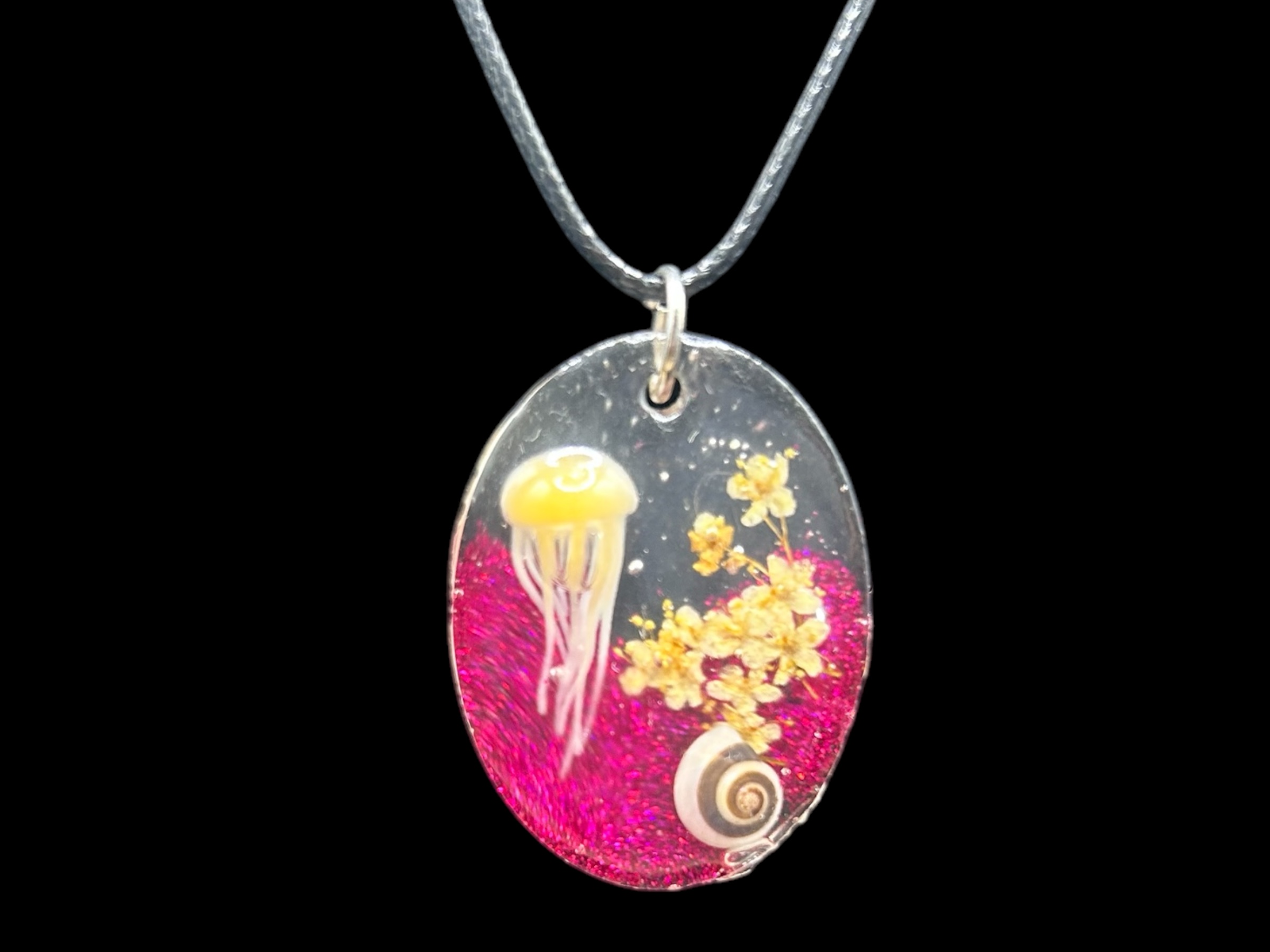 Introducing our Coastal Sip Designs UV resin necklace, where jellyfish and flowers come together in a funky unique design. With this necklace, you'll be making a splash wherever you go!
