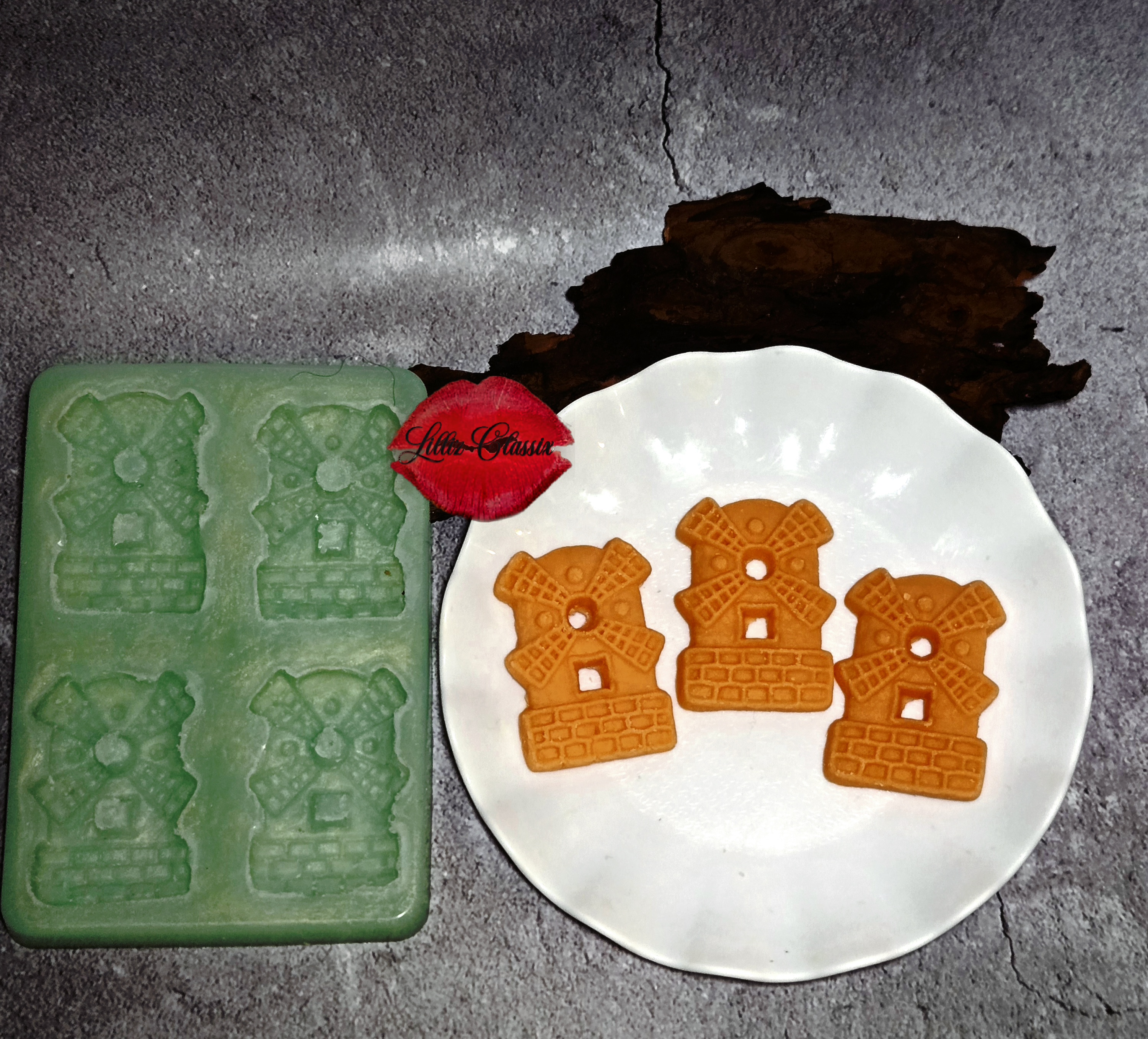 This handmade silicone mold features detailed windmill-style cookie shapes with defined edges and surface texture for a realistic baked appearance. Made from premium flexible silicone, it ensures clean impressions and effortless demolding. Perfect for wax melts, candle embeds, soaps, resin crafts, or decorative bath products. Reusable, durable, and designed for consistent results.