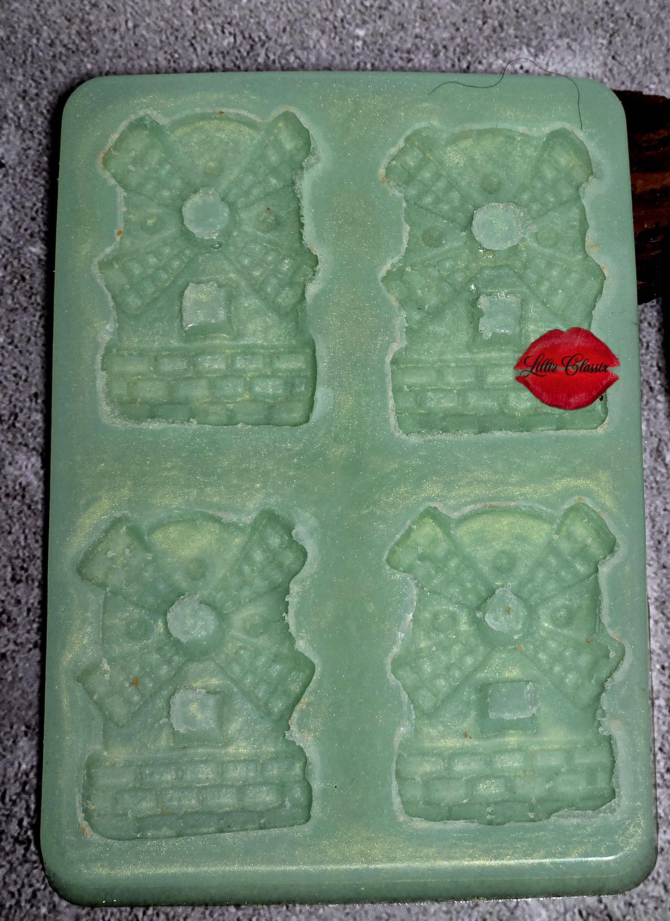 These handmade windmill cookie silicone molds are created using real windmill-style cookies as the original master. The cookies are carefully arranged in a mold tray and covered with high-quality liquid silicone. As the silicone cures, it captures the distinctive shape, edges, and surface texture of the cookies. Once fully cured, the cookies are removed, leaving detailed cavities that accurately reflect the original design. The finished molds are flexible, durable, and reusable, making them ideal for wax melts, soap, candle embeds, and decorative craft applications.